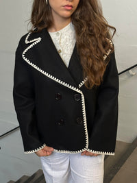This jacket has the same fit as our popular Gina jacket, but is slightly thinner in the material. The jacket has wide lapels and 2 large side pockets. It closes with a double button closure at the front and has the finest stitching details.