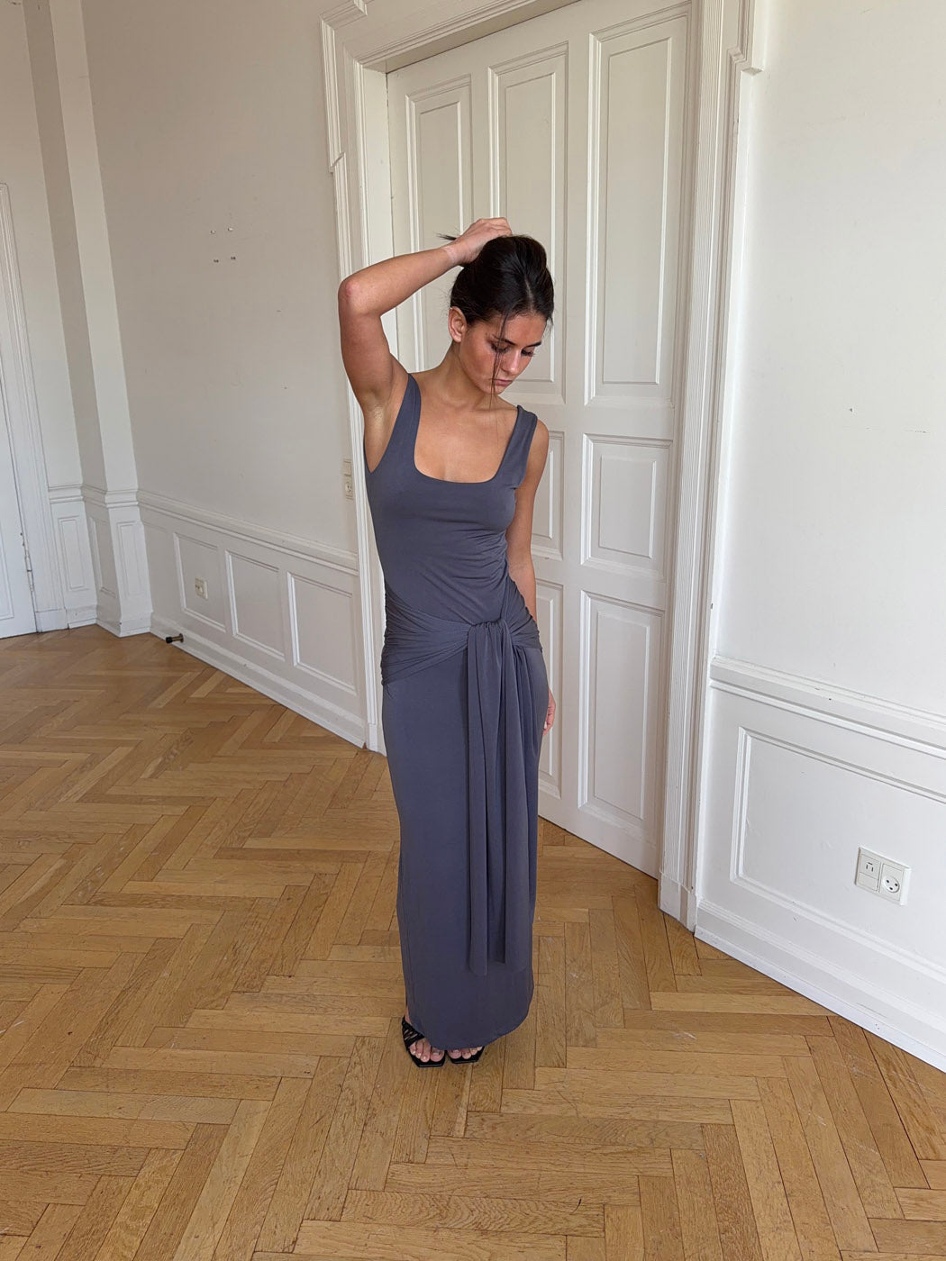 Mia dress with tie detail - Grey