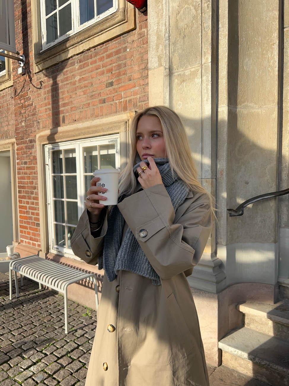 Its wide shape and chunky feel make it ideal for cold days when comfort and style need to go hand in hand. Ninita can be worn loosely over a coat for a relaxed look or wrapped snugly around the neck for extra warmth. An essential winter accessory that adds simple luxury to both everyday wear and city life.