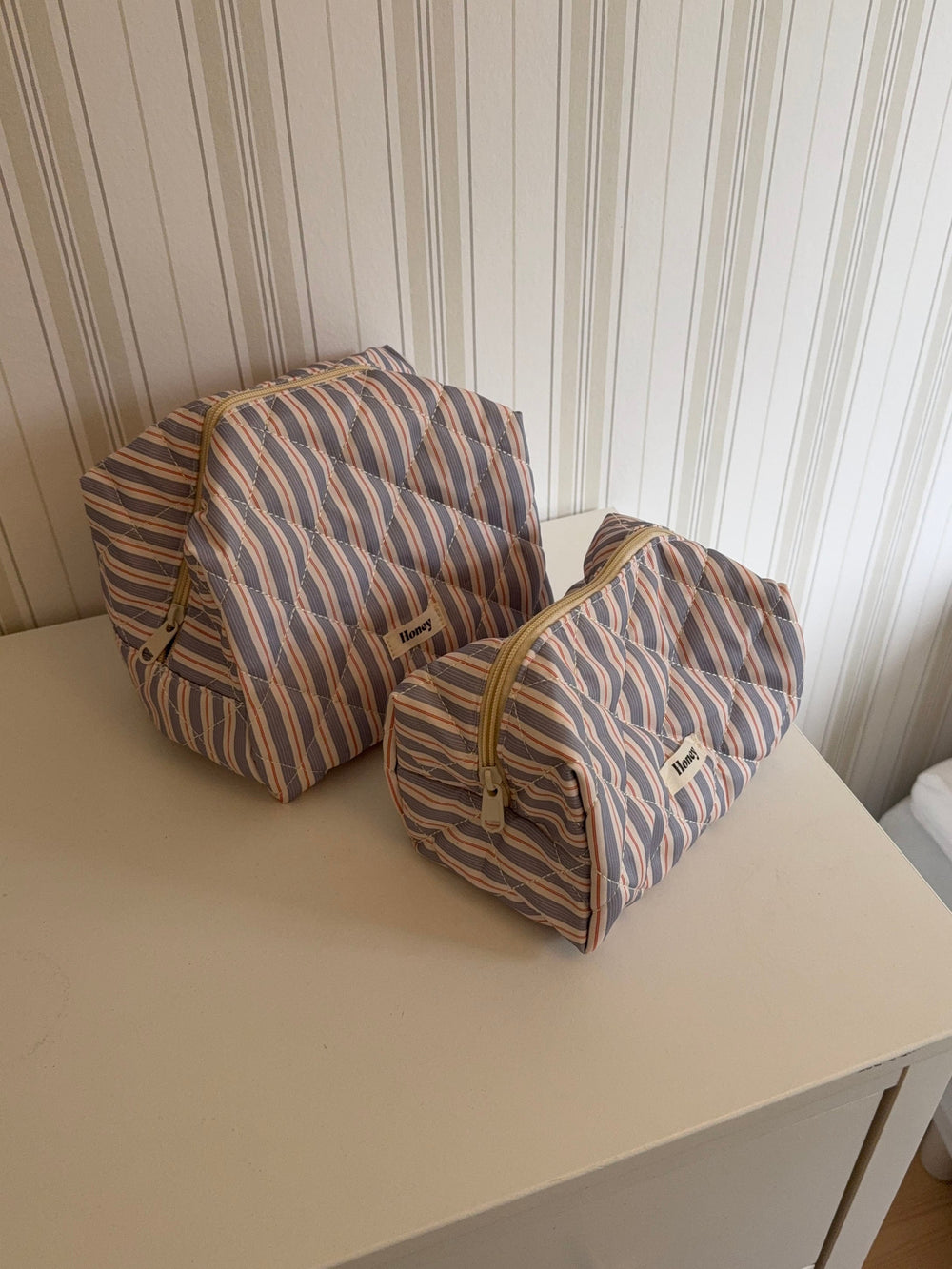 Honey large toiletry bag – Light blue stripes