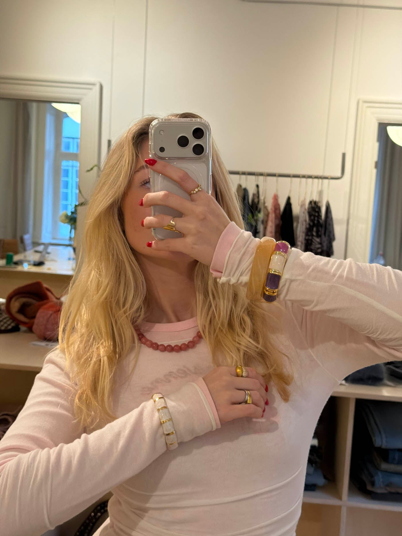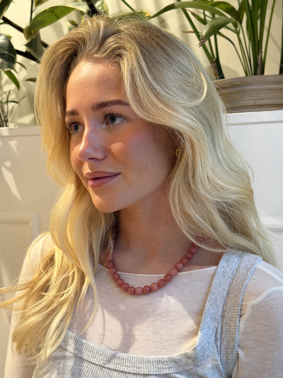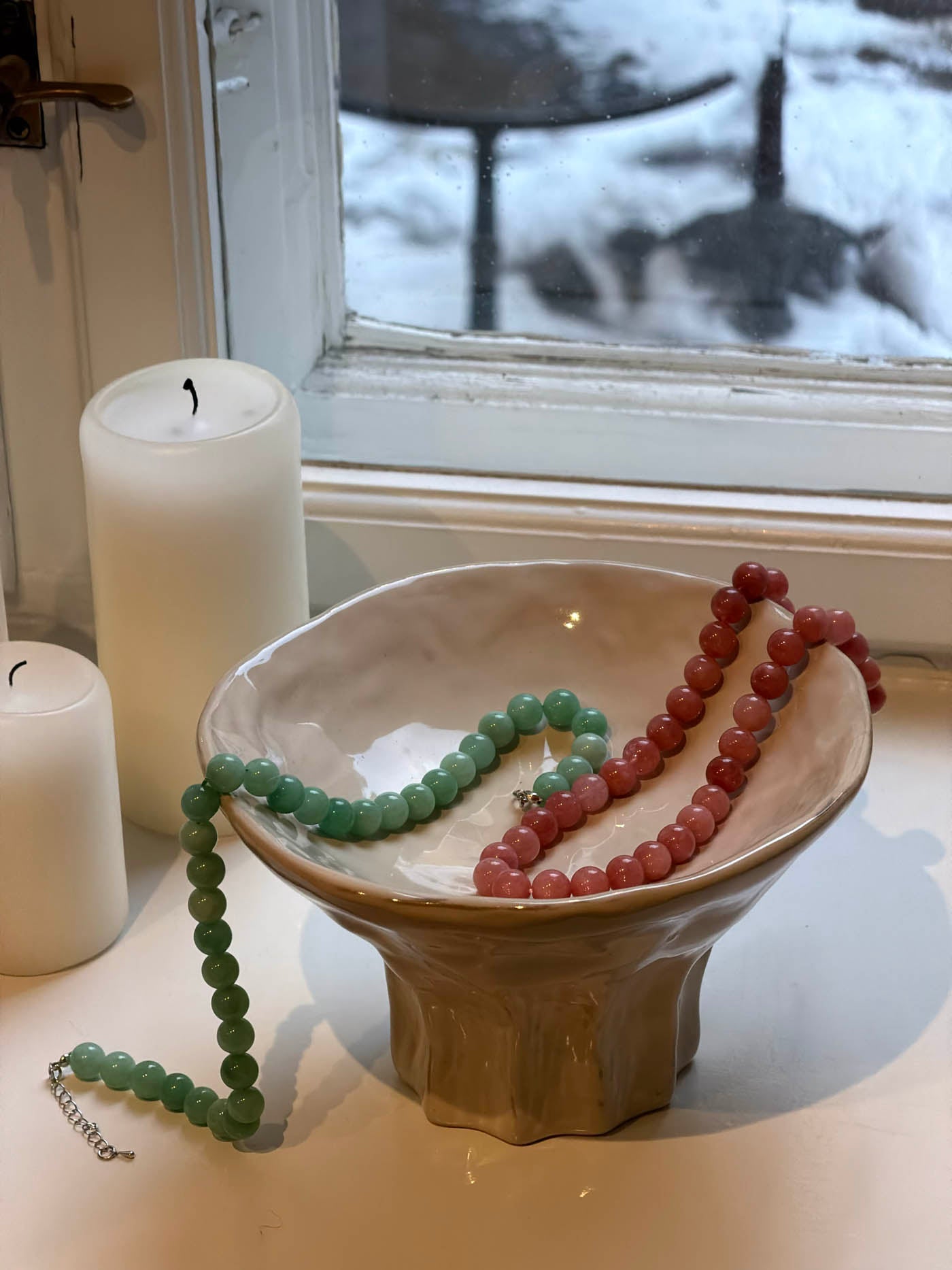 The Monique necklace is a simple and feminine necklace with round beads in a soft rose shade. The timeless design creates a light and elegant expression, making the necklace easy to style both alone or together with other jewelry. Perfect for adding a subtle touch of color to both everyday and festive looks.
