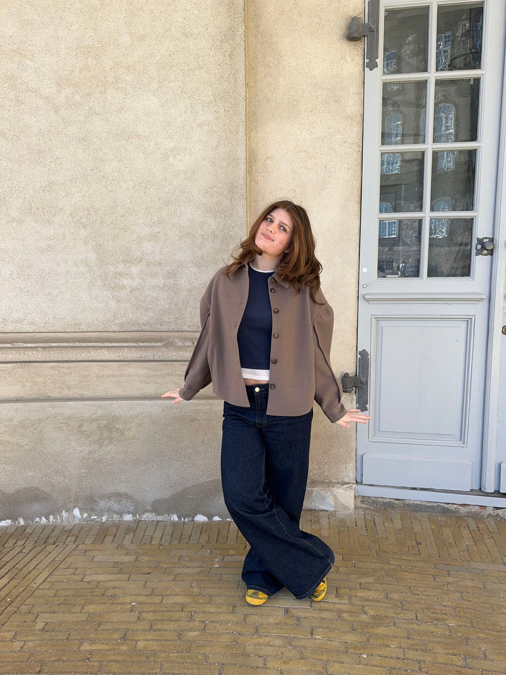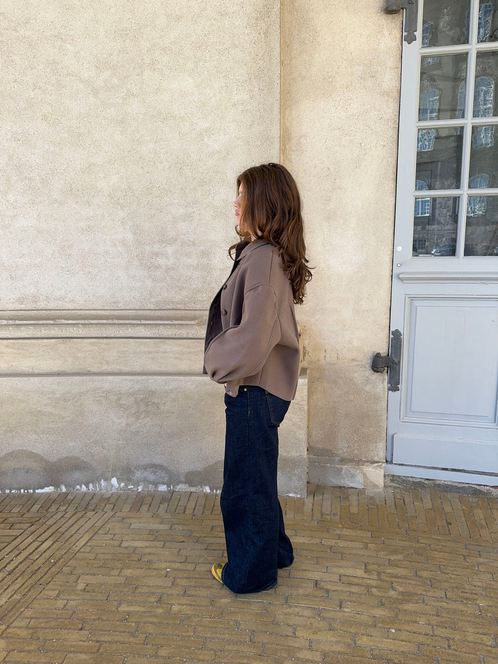This short jacket features a soft outer layer for a comfortable feel. It has pockets that add a stylish touch. The loose fit makes it versatile and perfect for both casual and more formal occasions. A timeless addition to your wardrobe.