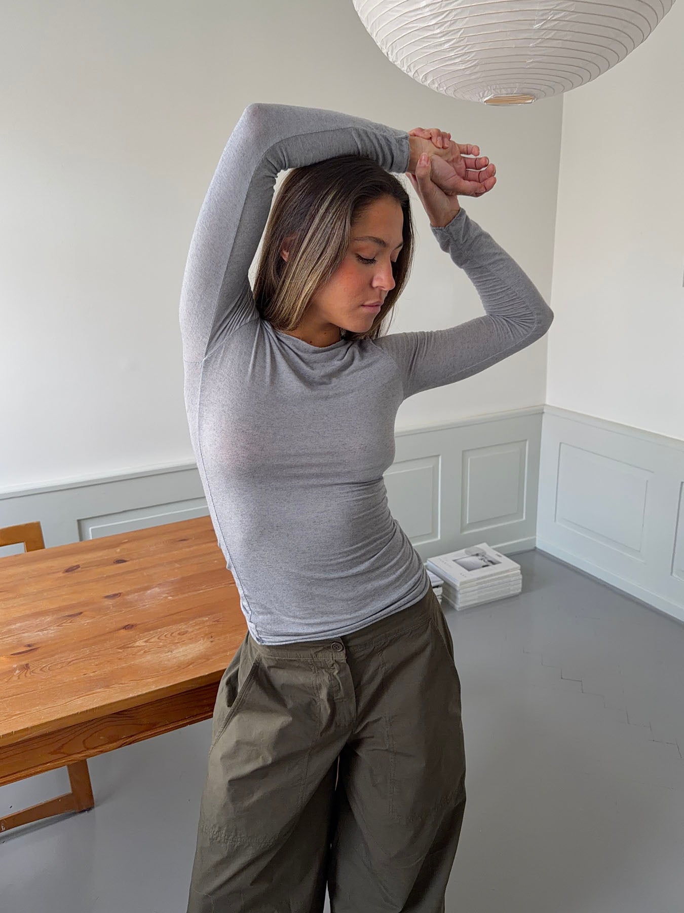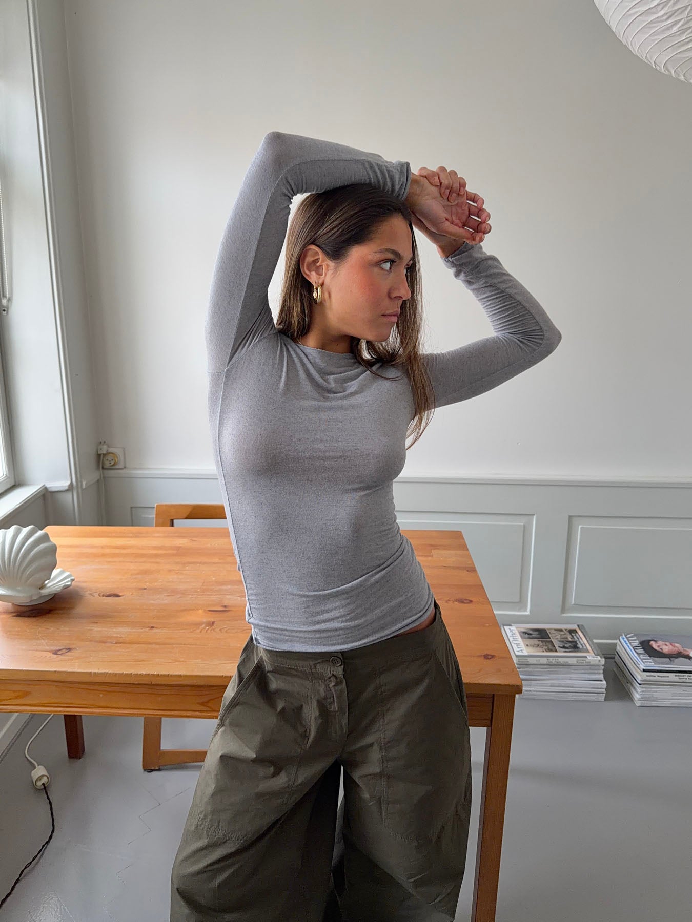 The Kaia long-sleeved blouse in grey is a timeless and luxurious addition to your wardrobe. It is knitted in soft cashmere that feels light and comfortable against the skin while providing warmth and coziness. The blouse features a classic, close-fitting silhouette with a round neckline and long sleeves, making it suitable for both everyday wear and more elegant occasions. A simple and refined design that can be styled with everything from jeans to skirts, or layered over a shirt for a chic layered look.