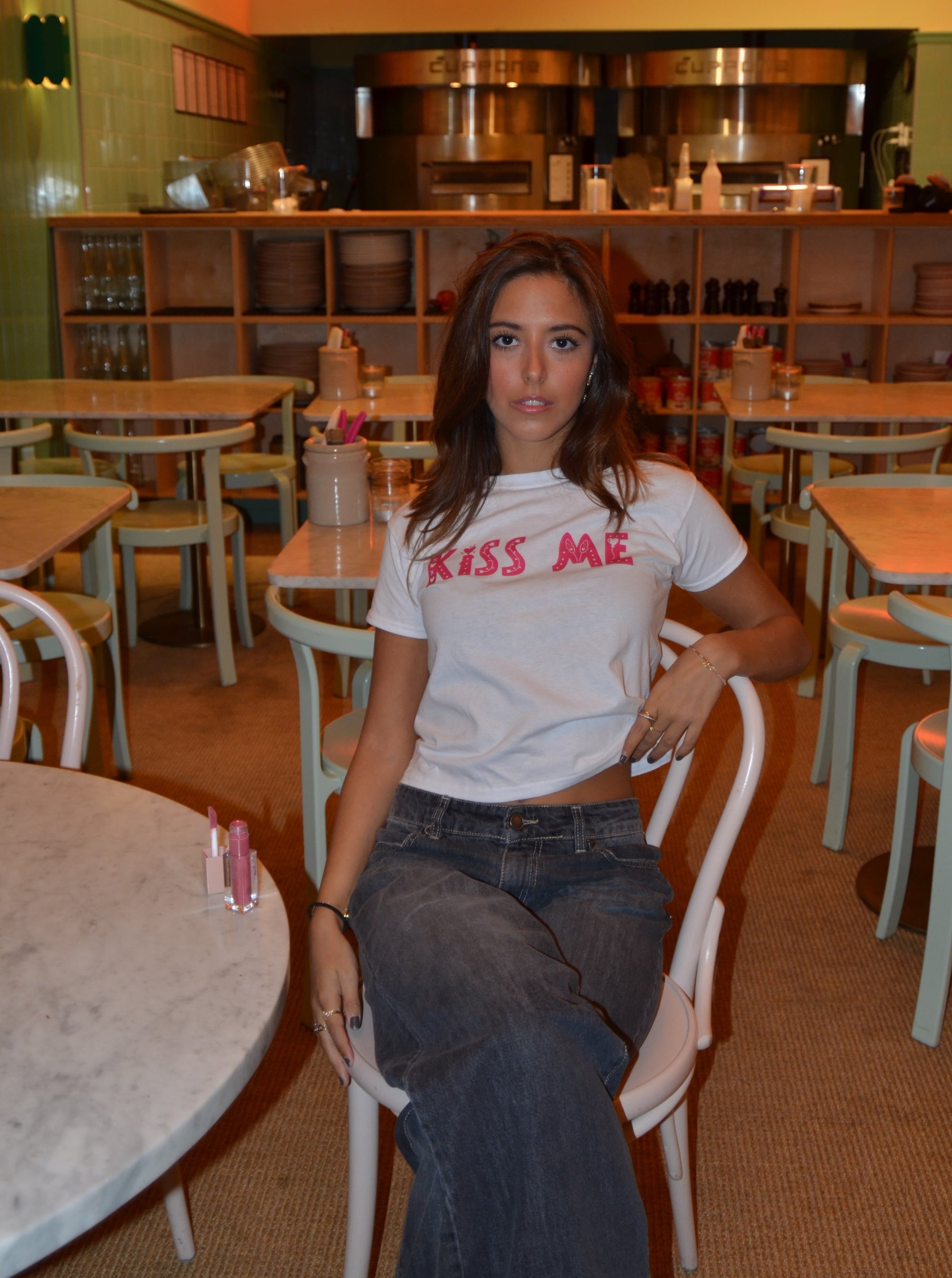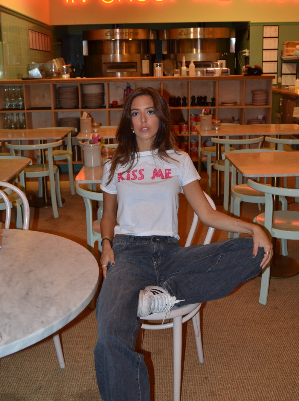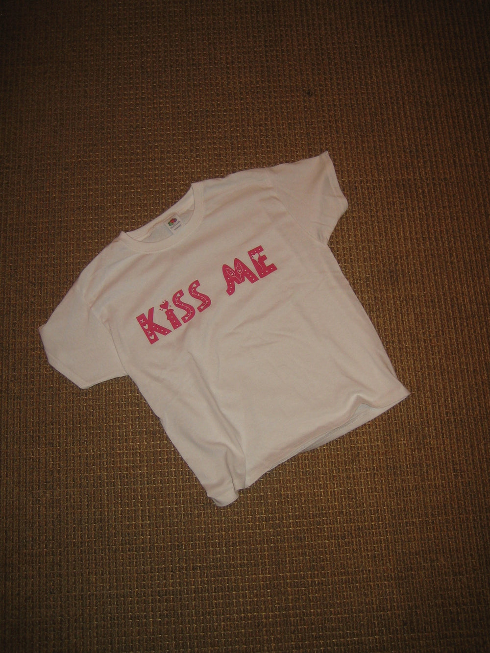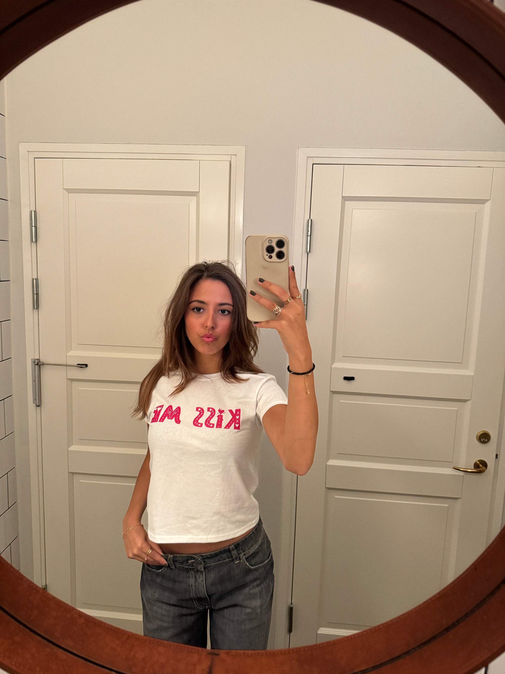Baby tee with the text "kiss me". Our tees are from fruit of the loom and in a super soft and comfortable quality.