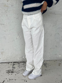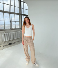 These pants are made with an oversized and loose fit. The pants have belt loops and a zipper and hook closure. They have 2 side pockets and 1 decorative pocket on the back. They have pleats at the front that make the pants extra stylish.