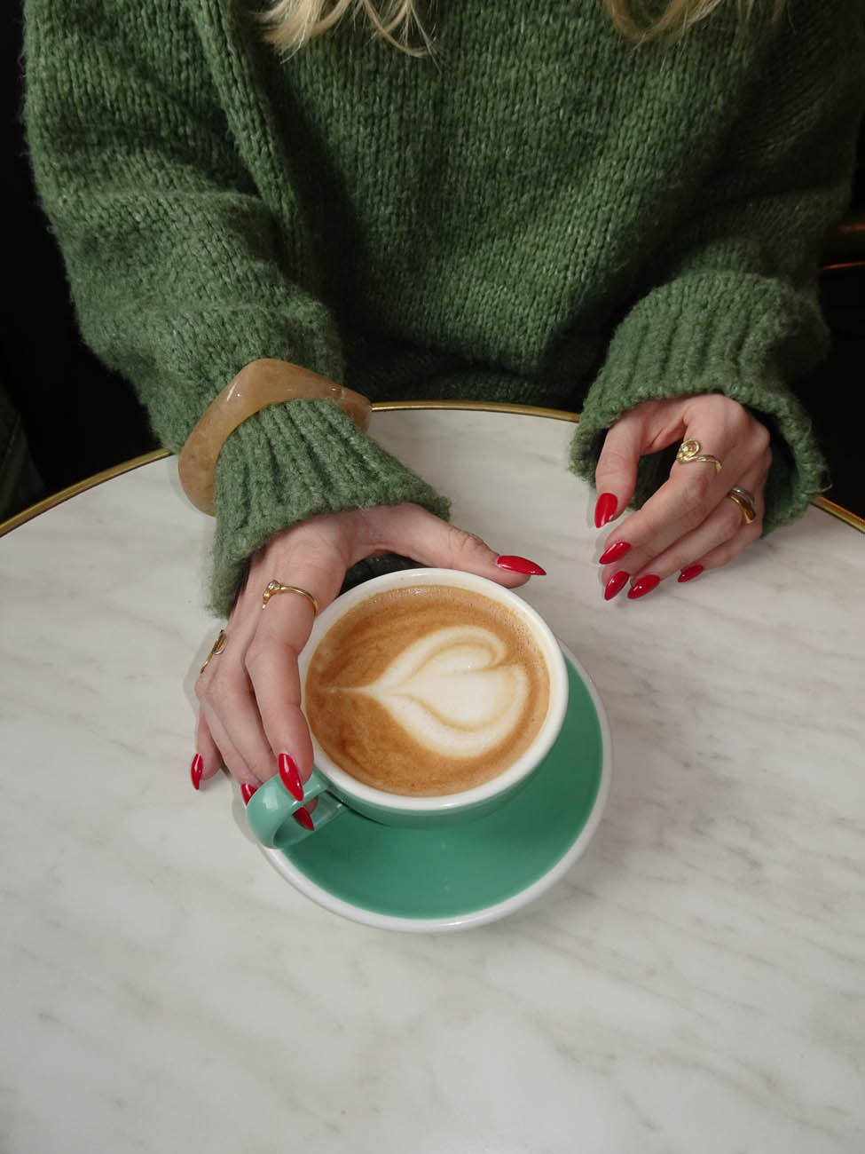A sculptural and eye-catching bracelet made of glossy, marbled resin in a light shade. Its angular, asymmetrical shape gives a modern twist to an otherwise classic statement piece. Perfect worn alone or paired with other chunky accessories for a playful, summery look.