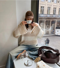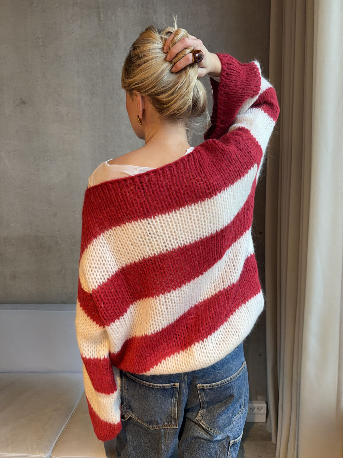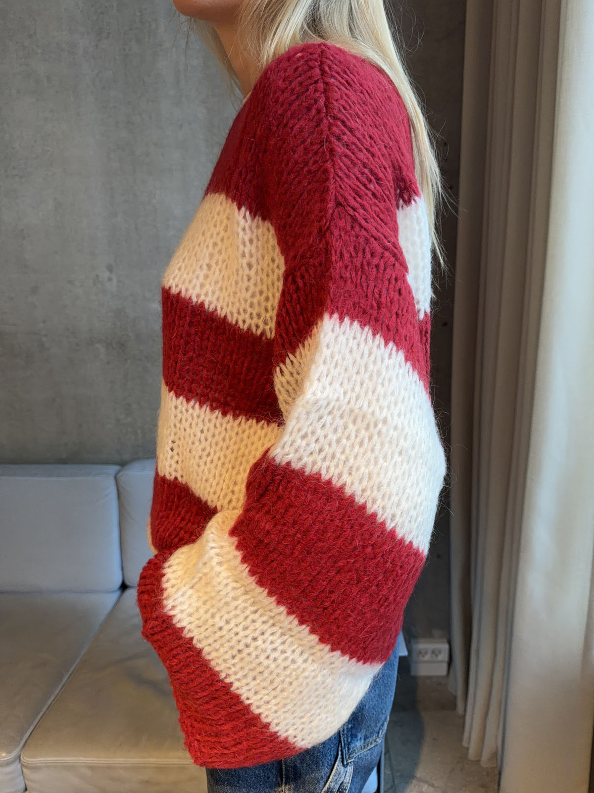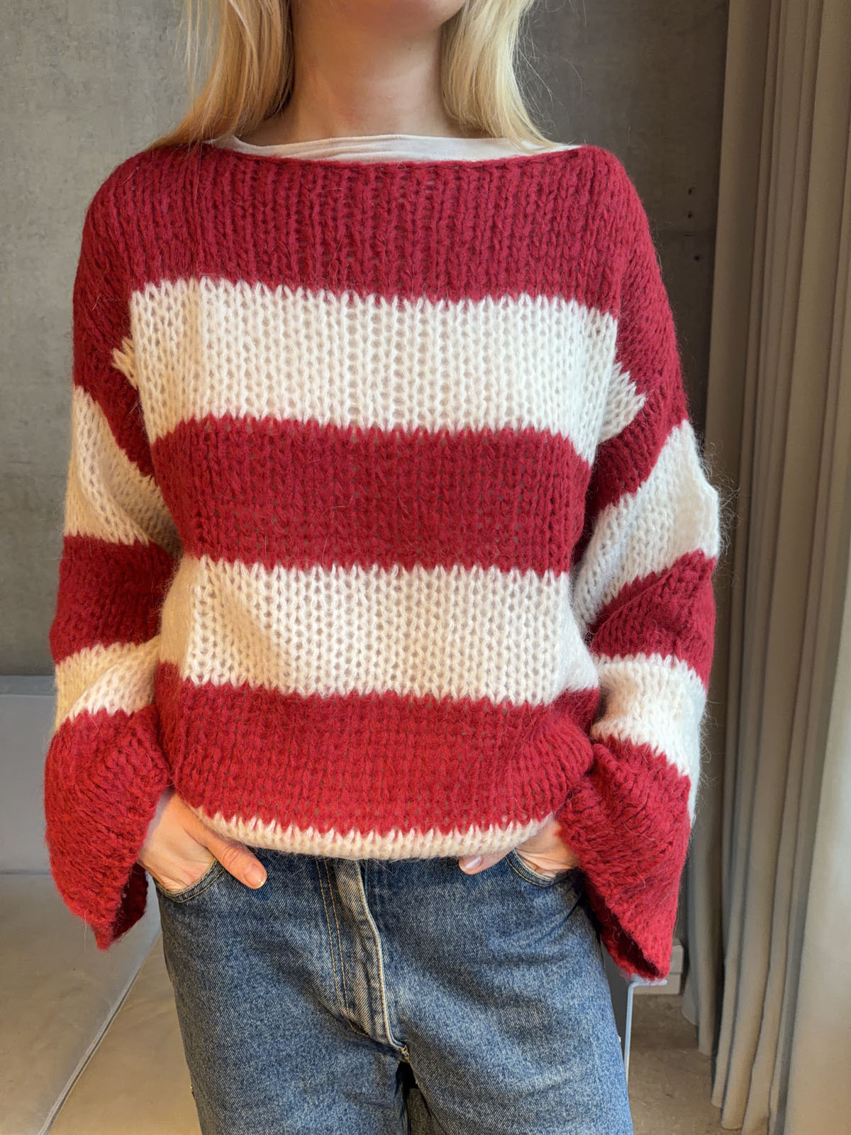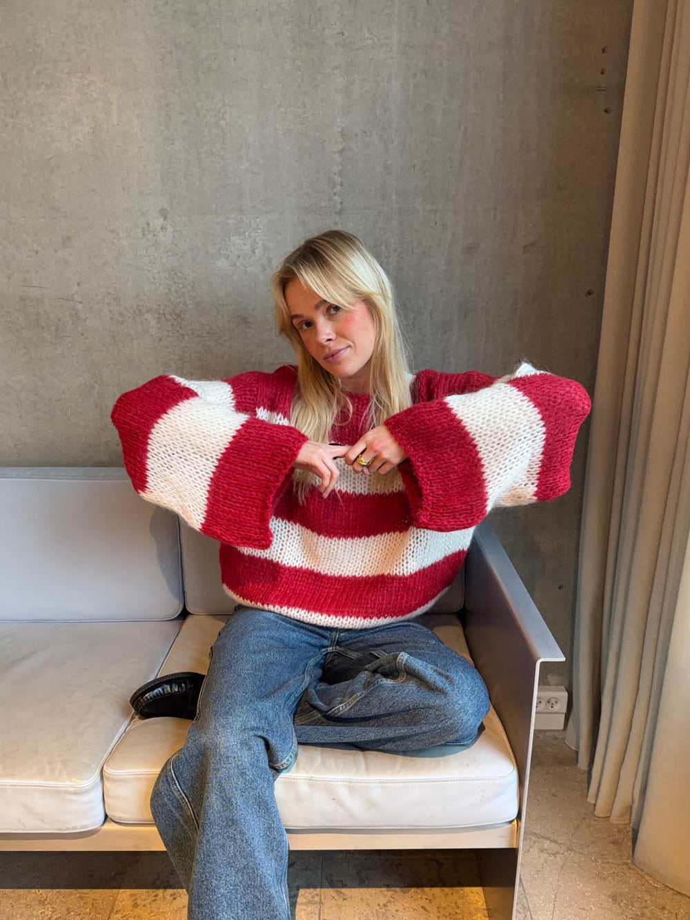 This knitted sweater has a loose and oversized fit and is perfect for all seasons, as you can wear it in the cold winter months as well as on a cold summer evening. The knitted sweater consists of long wide sleeves and is designed with a wide round neckline.