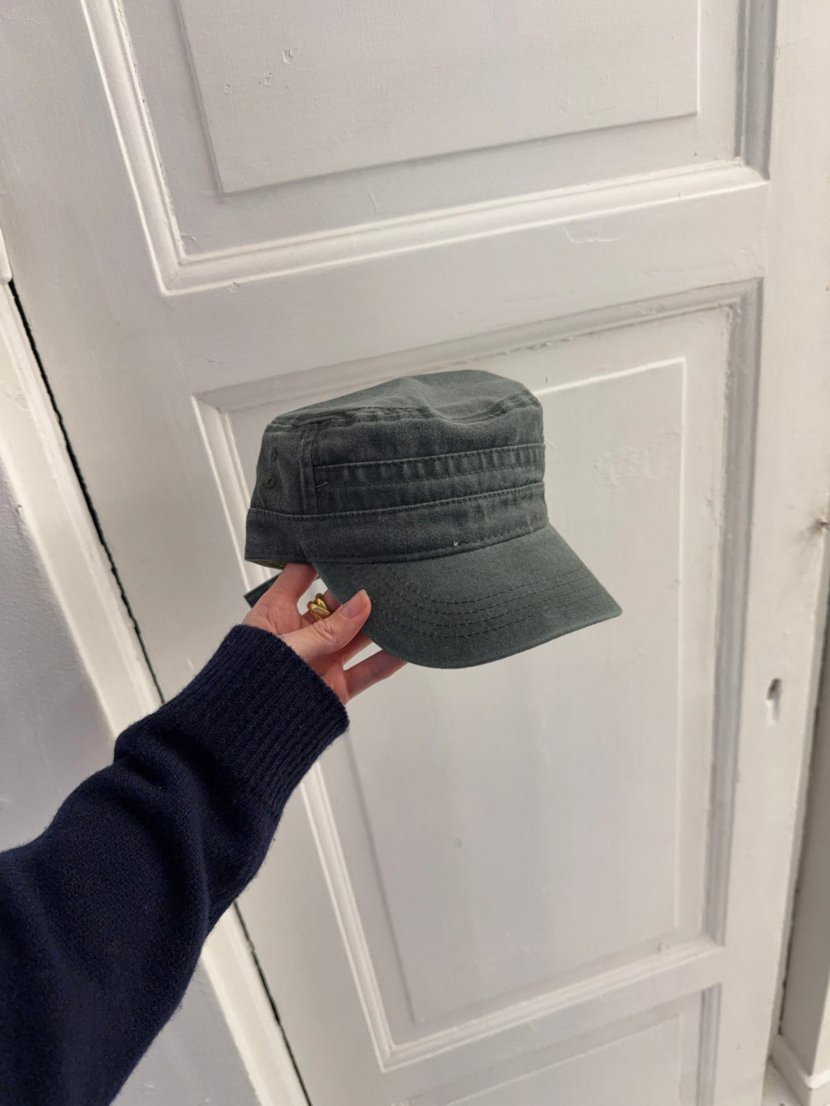 The Myr cap is a relaxed style made from washed army green cotton with a simple, timeless design. Its military-inspired shape gives it a rugged yet refined look, making it perfect for both everyday wear and weekend outings.