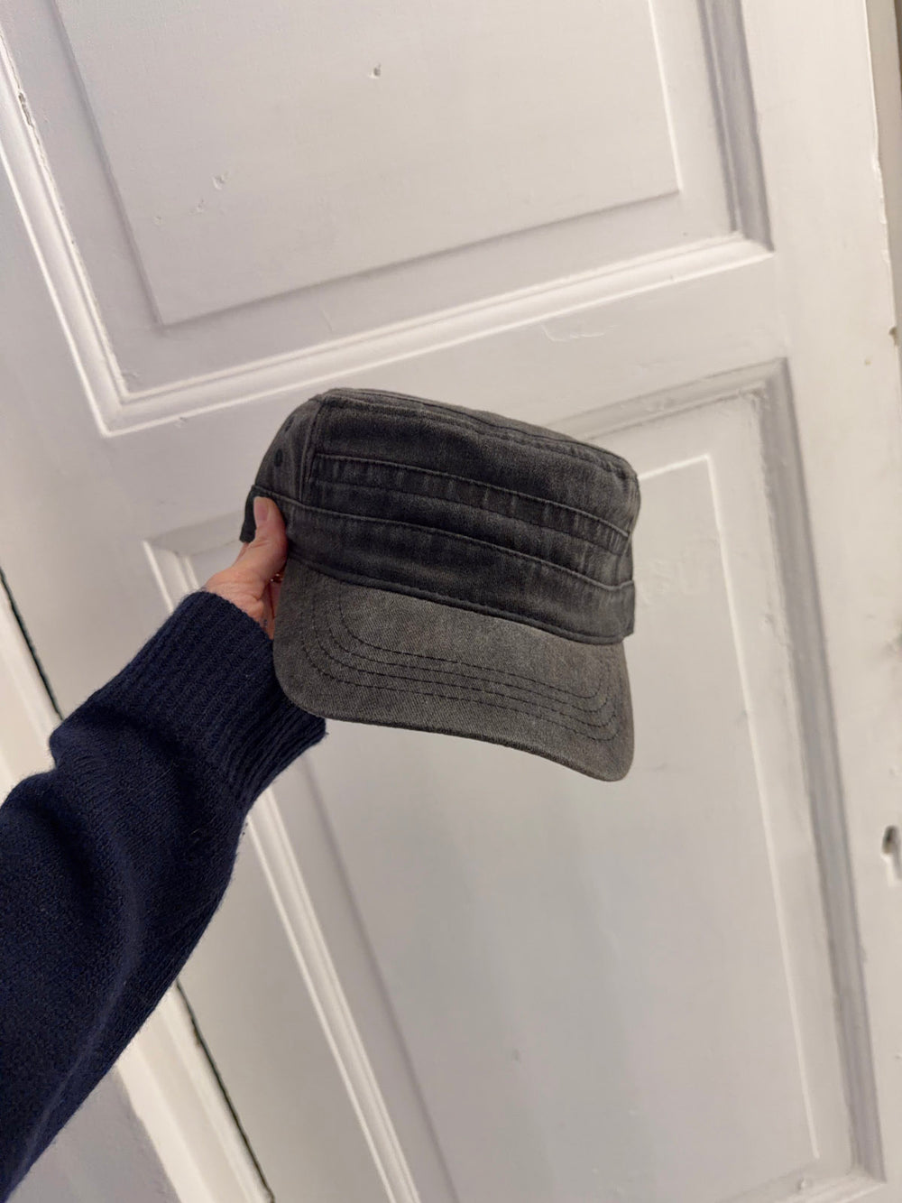 The Myr cap is a relaxed style made from washed dark grey cotton with a simple, timeless design. Its military-inspired shape gives it a rugged yet refined look, making it perfect for both everyday wear and weekend outings.