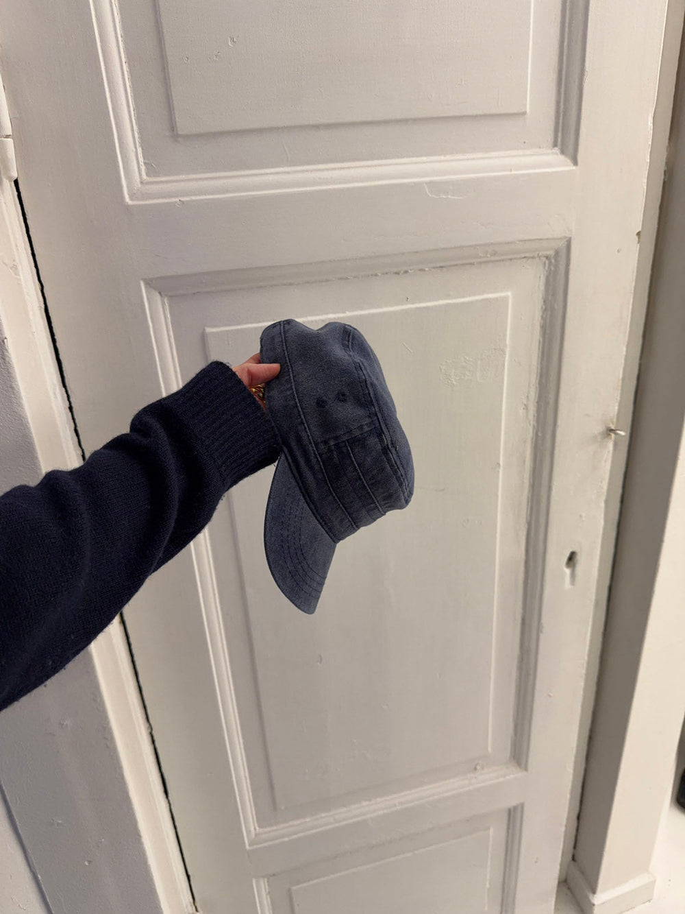The Myr cap is a relaxed style made from washed navy cotton with a simple, timeless design. Its military-inspired shape gives it a rugged yet refined look, making it perfect for both everyday wear and weekend outings.