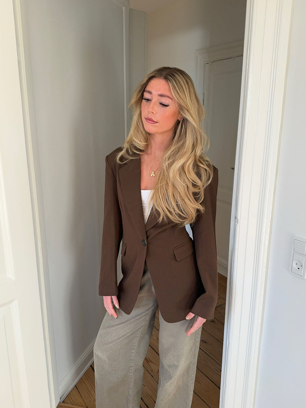 This elegant brown blazer is a must-have in any wardrobe. Perfect for both formal and casual occasions, it combines a classic cut with modern details. The adjustable tailored fit and structured look create a sophisticated expression, whether styled with matching trousers or jeans for a more relaxed touch.