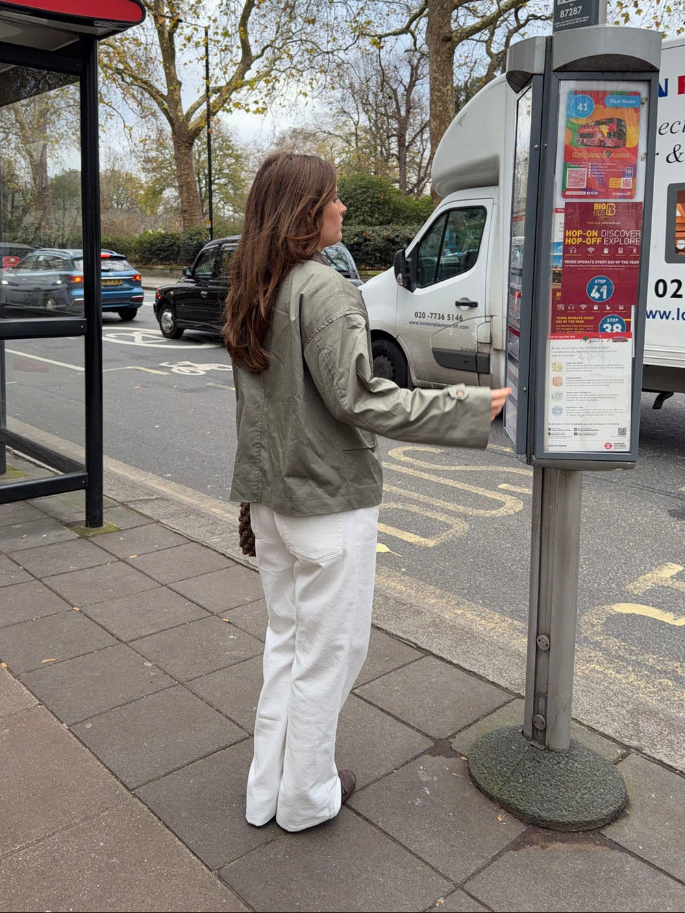The large front pockets with button details and the adjustable sleeve straps emphasize the functional design, while the straight fit makes the jacket easy to style over knitwear, basic tops, and shirts. A perfect jacket for everyday wear and the in-between seasons when you want a clean yet relaxed look.