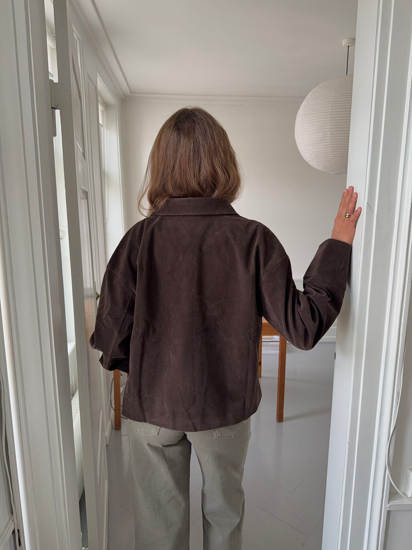 This elegant jacket in soft velour is a timeless choice that combines comfort with an exclusive look. The velvet-soft material gives the jacket a beautiful texture and a subtle sheen, adding a sophisticated touch to any outfit. The color is warm and versatile, making it easy to style for both everyday wear and more polished occasions.