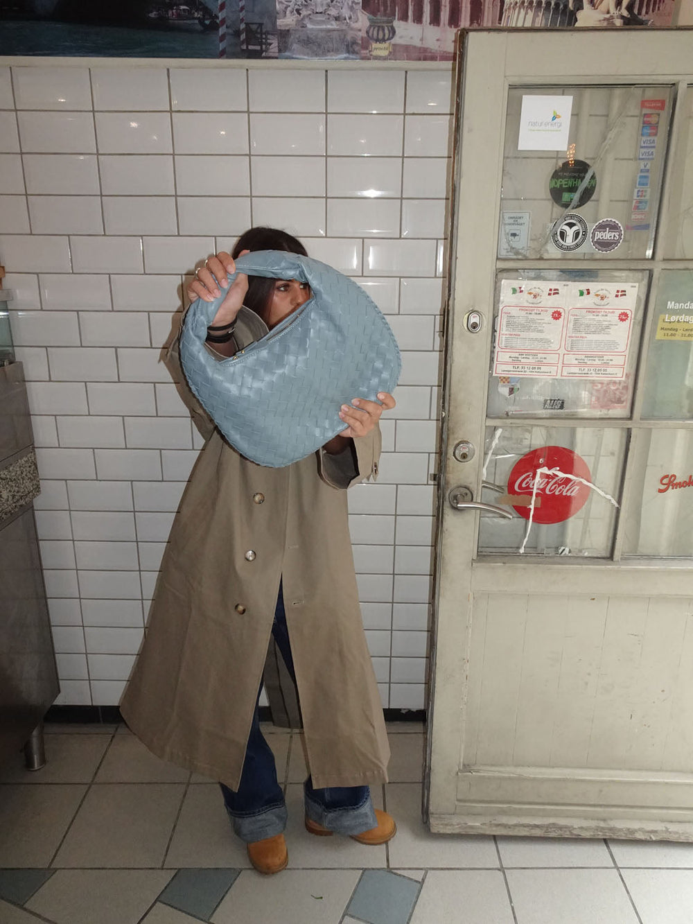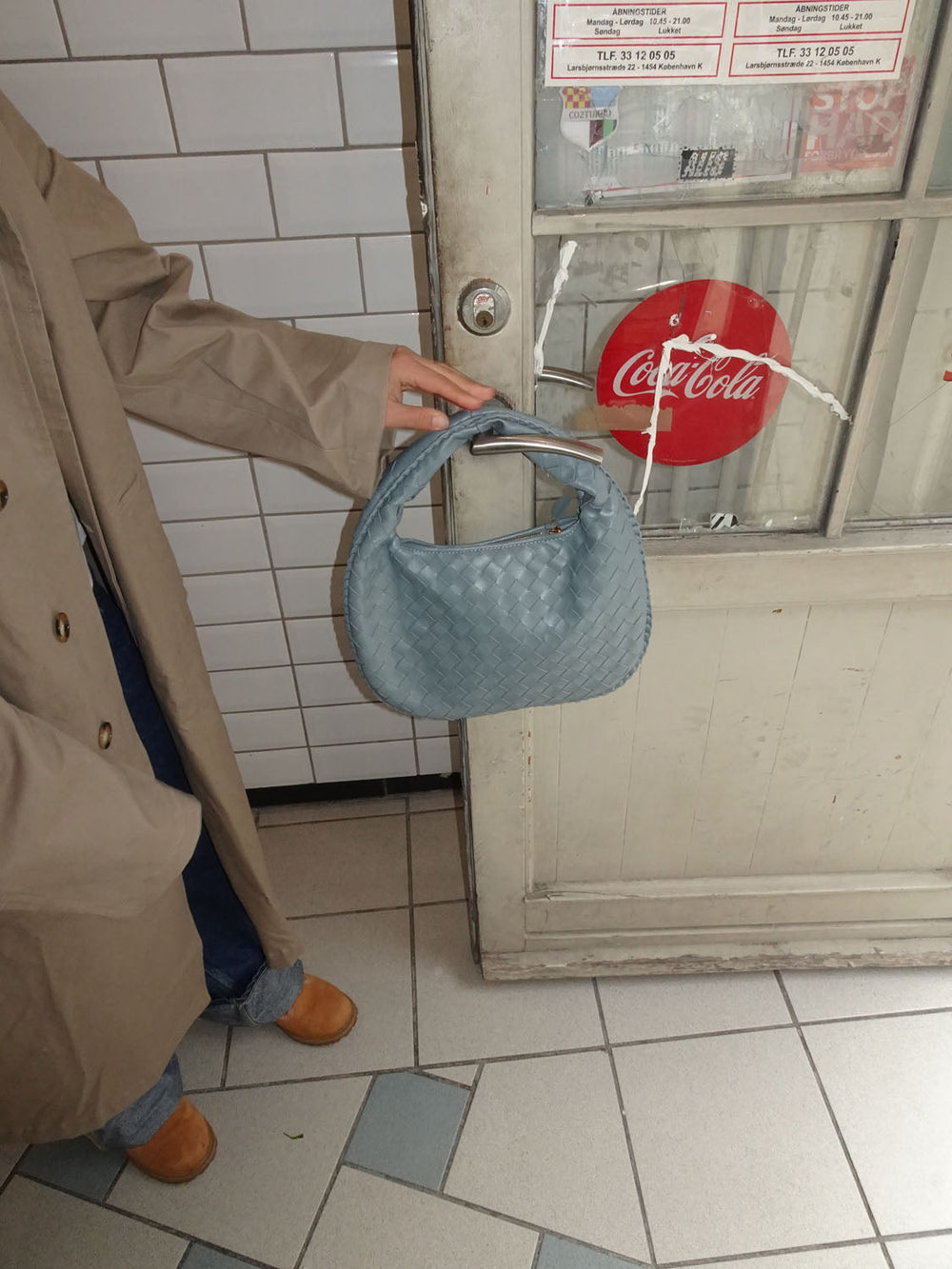 Vores Paris skuldertaske har en rund form og et vævet/flettet design. Tasken har et stort hovedrum med lynlåslukning, og to mindre rum med lynlås inde i tasken samt en lille åben lomme.