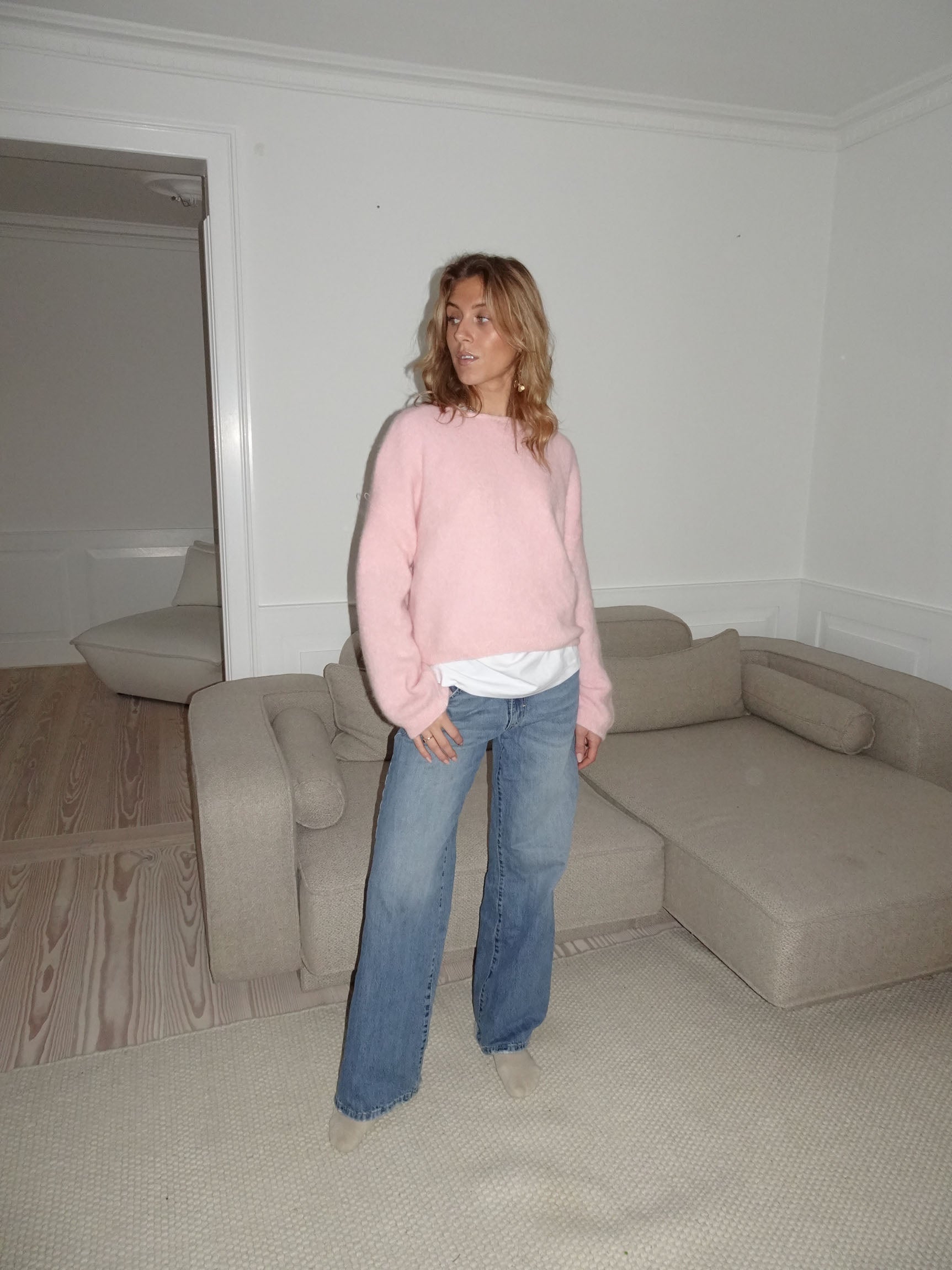 This sweater is made from the softest material, designed to keep you warm all winter long. With long sleeves and a relaxed, oversized fit, it offers both comfort and style. The luxurious blend of baby alpaca, wool, and elastane gives the sweater a cozy, yet breathable feel, making it perfect for layering or wearing on its own.