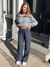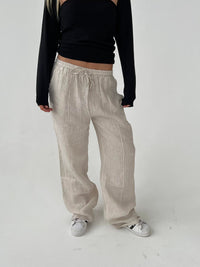 Signe linen pants with a loose fit, elasticband in the waist and pockets on the sides, as well as a decorative pocket on the back.