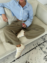 The perfect sneakers for everyday use. Keeps your style sharp and matches perfectly with any outfit! The shoe has white details and white laces. They have a brown sole.