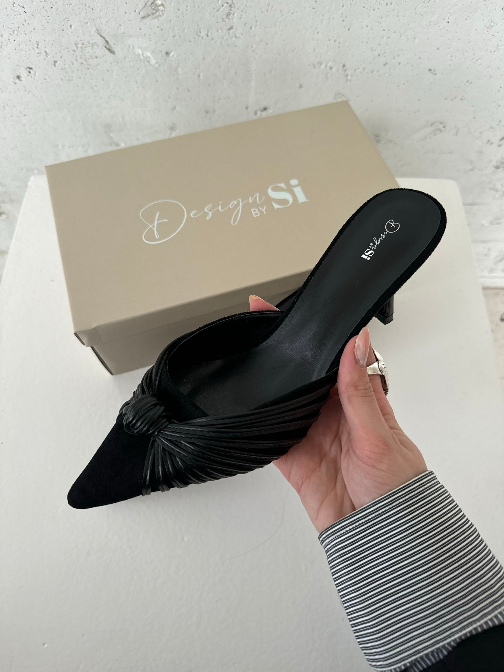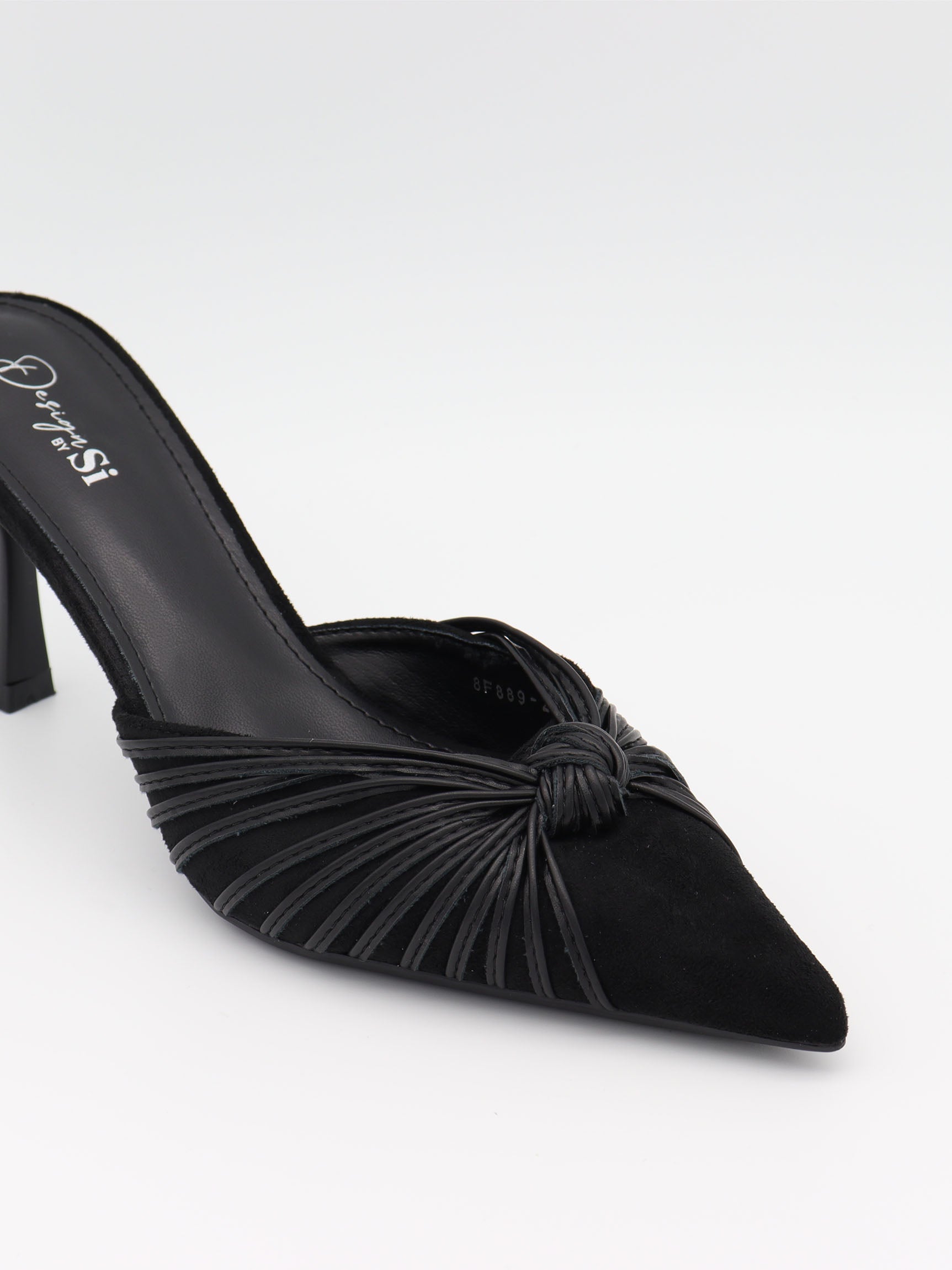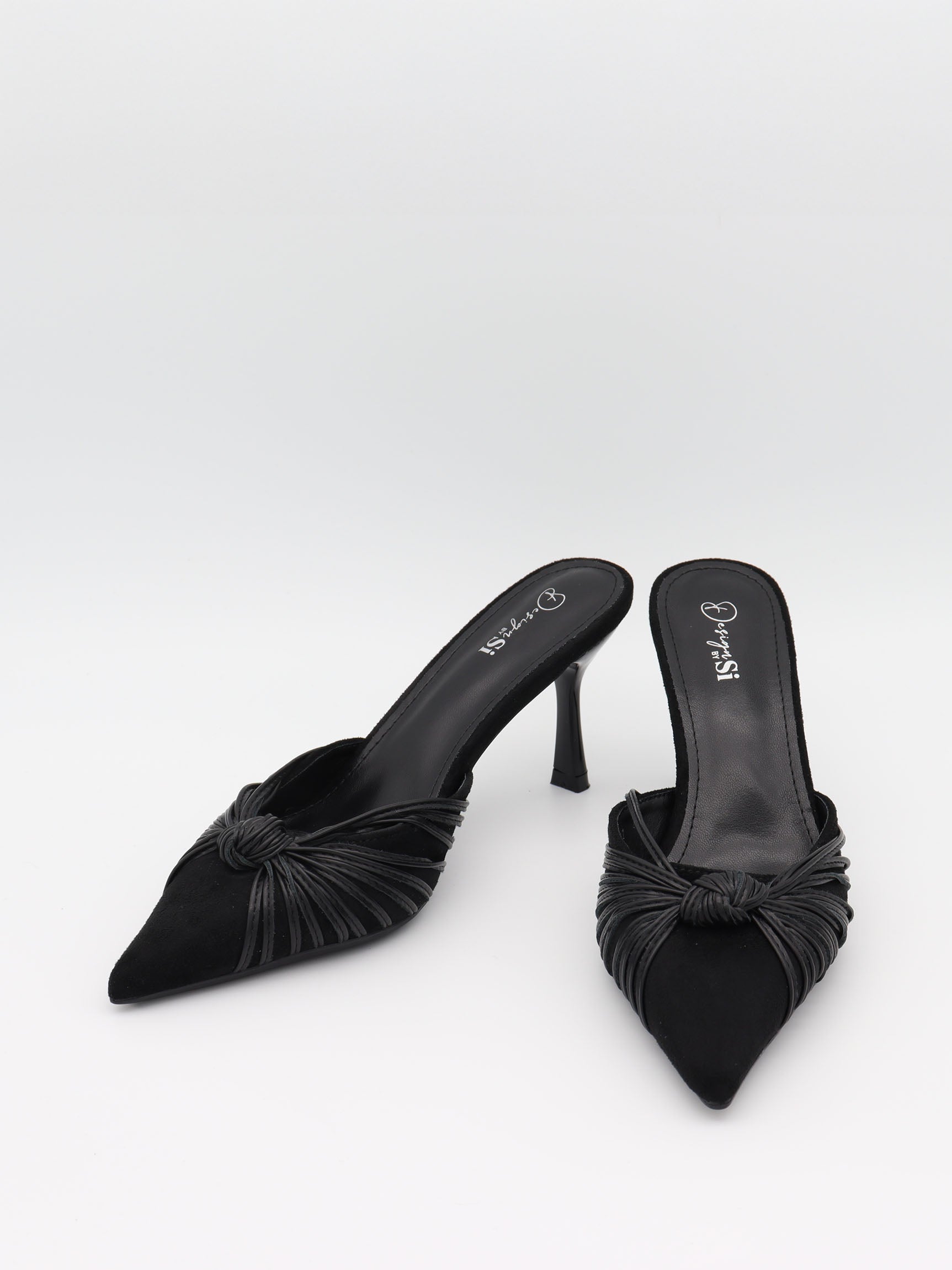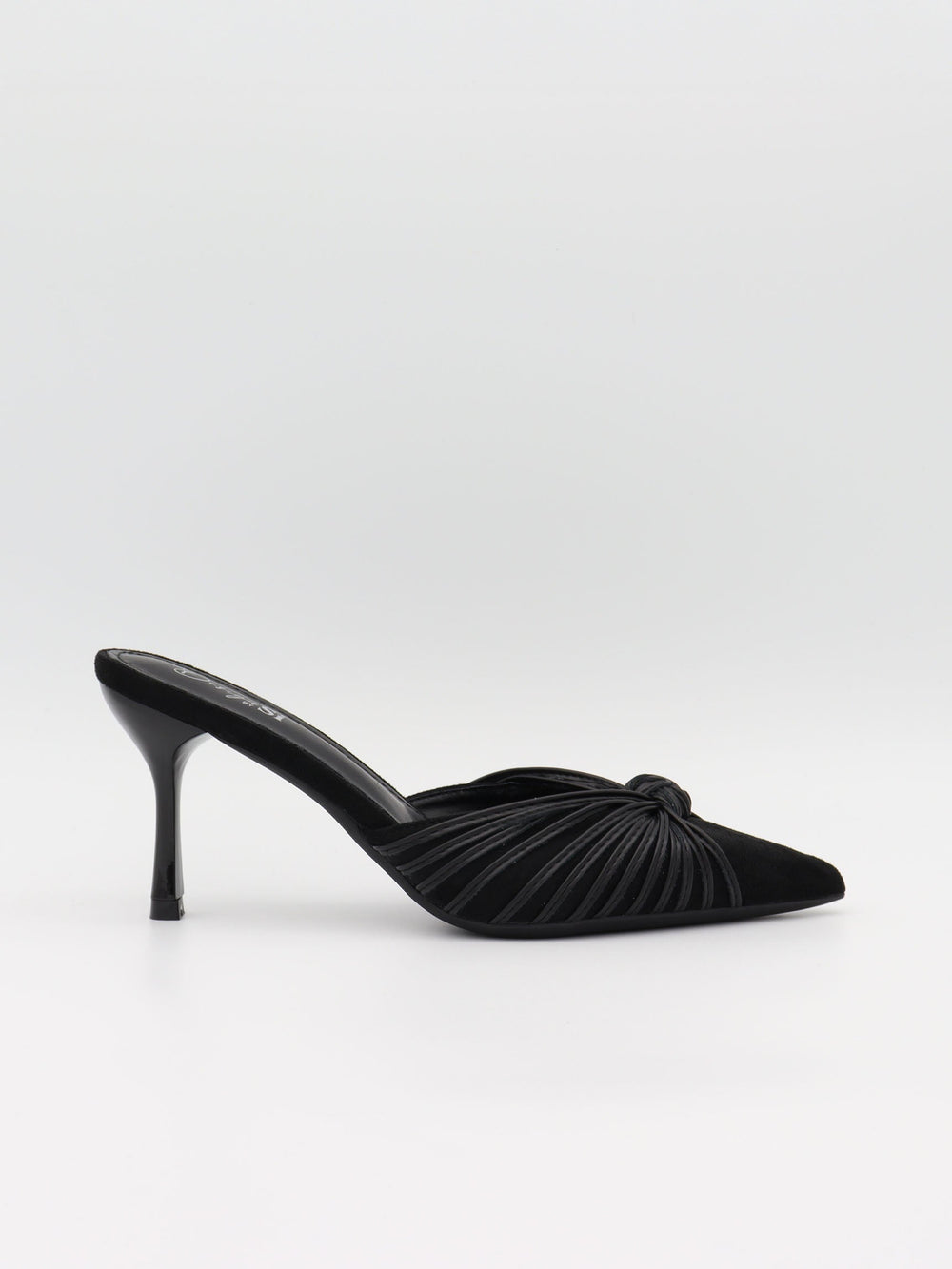 These elegant heels are crafted from suede, offering a refined and stylish appearance. The toe is detailed with leather edges, creating a beautiful contrast, while the subtle gold accents add a luxurious touch. The pointed heel provides a sleek and sophisticated look, making them perfect for completing any festive outfit.