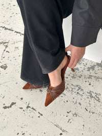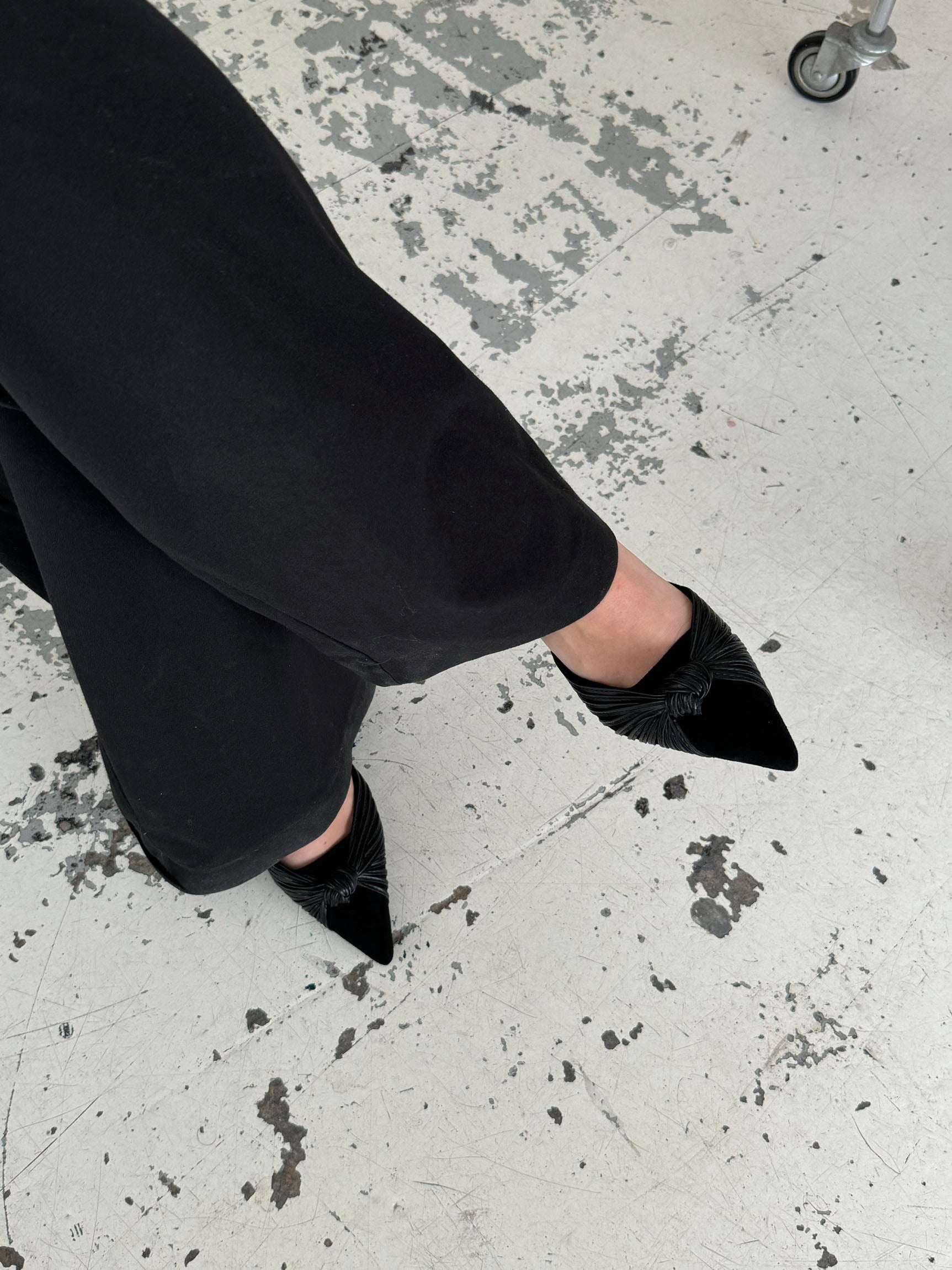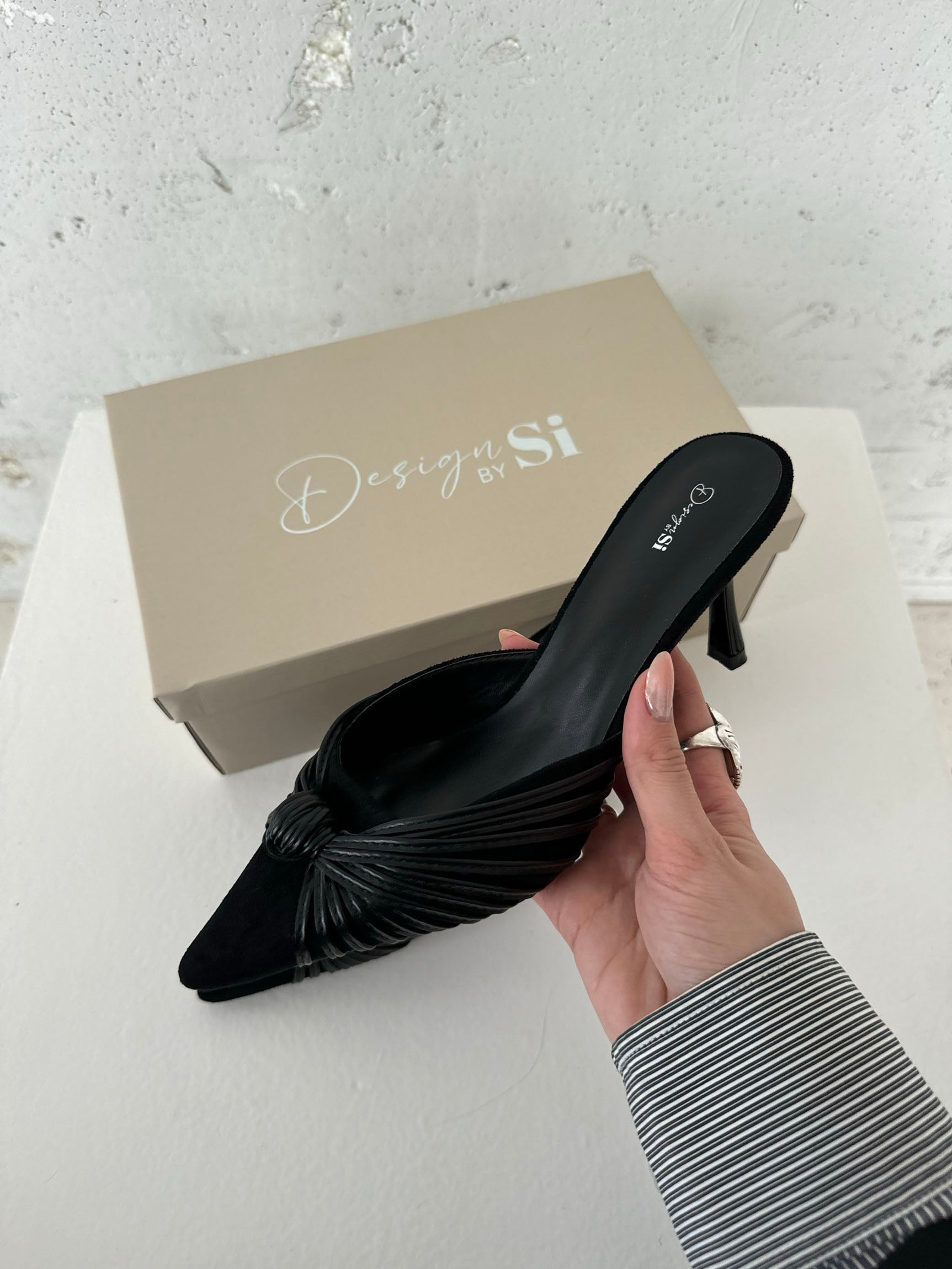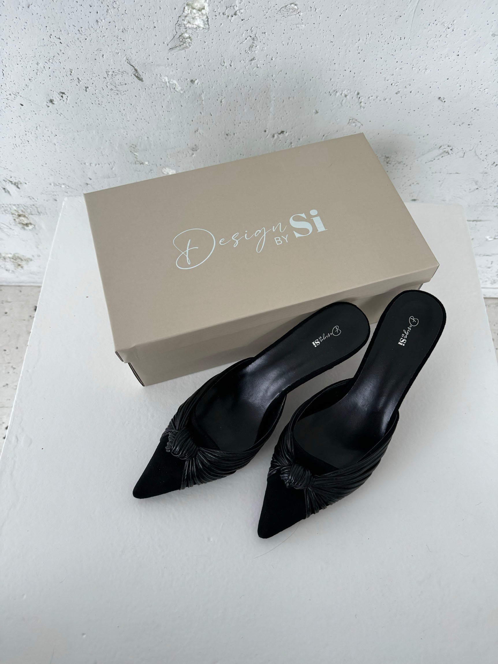 These elegant heels are crafted from suede, offering a refined and stylish appearance. The toe is detailed with leather edges, creating a beautiful contrast, while the subtle gold accents add a luxurious touch. The pointed heel provides a sleek and sophisticated look, making them perfect for completing any festive outfit.