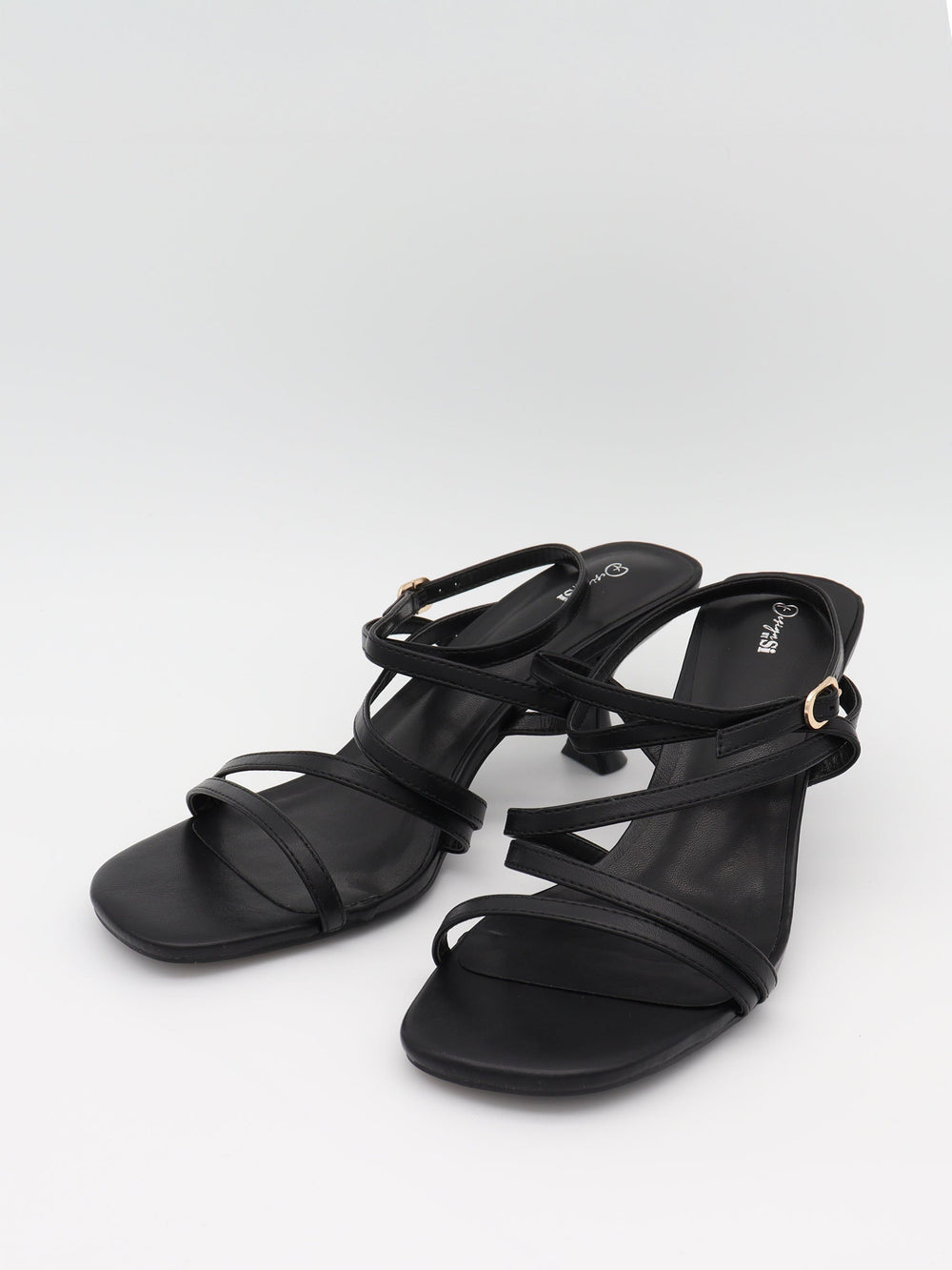 These elegant black sandals are a stylish choice for both everyday wear and special occasions. The delicate, slim straps create a feminine and lightweight look, while the adjustable ankle strap ensures a comfortable fit. The slender, slightly curved kitten heel adds an exclusive touch and makes the sandal easy to walk in – perfect if you want height without compromising on comfort. The square toe and prominent stitching give a modern finish, making the sandals ideal to pair with dresses, trousers, and summery outfits.