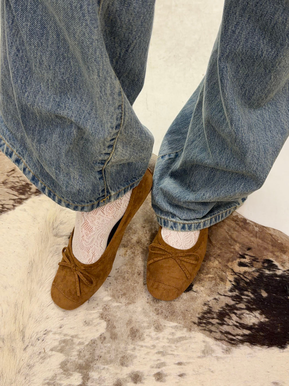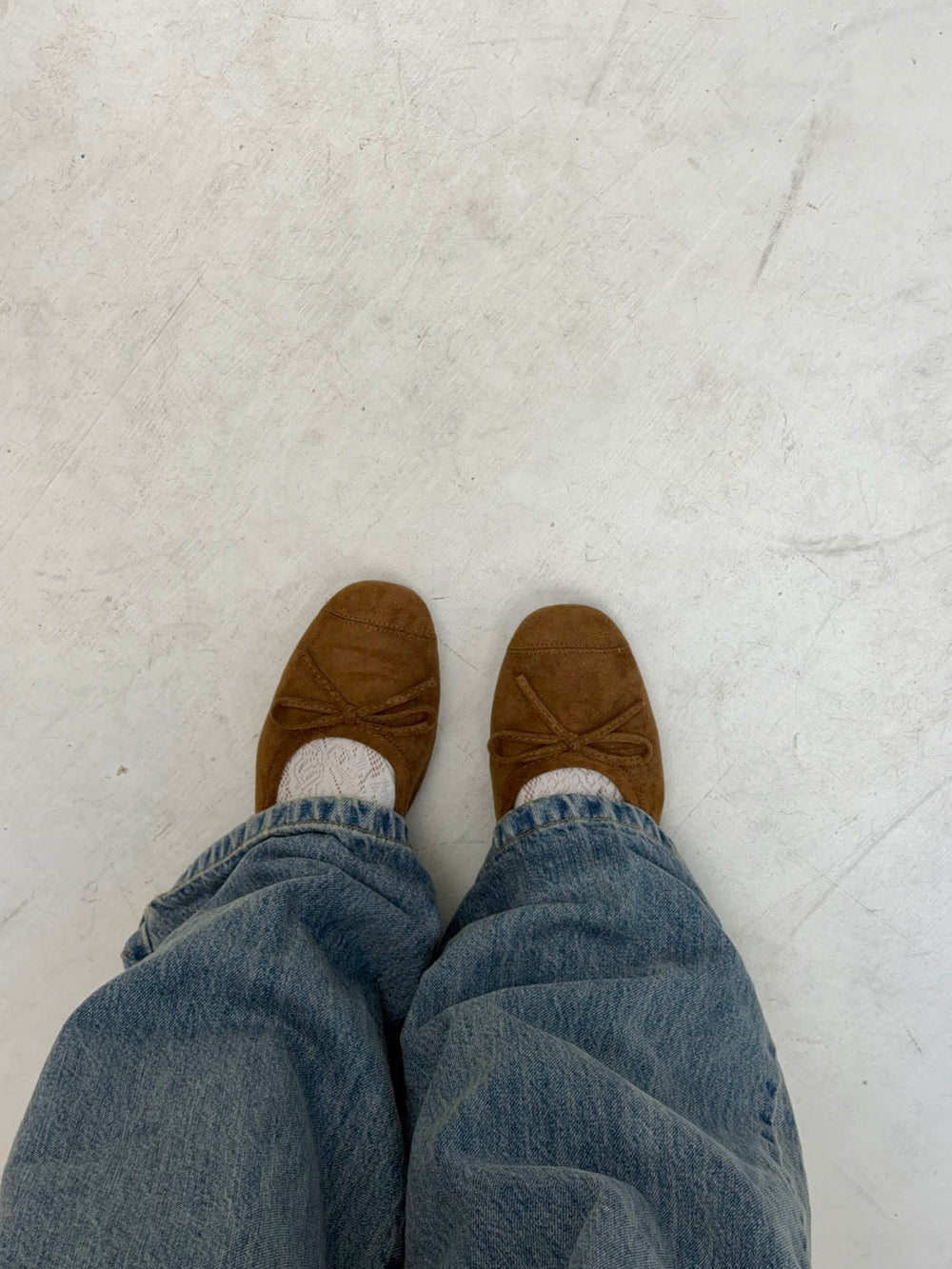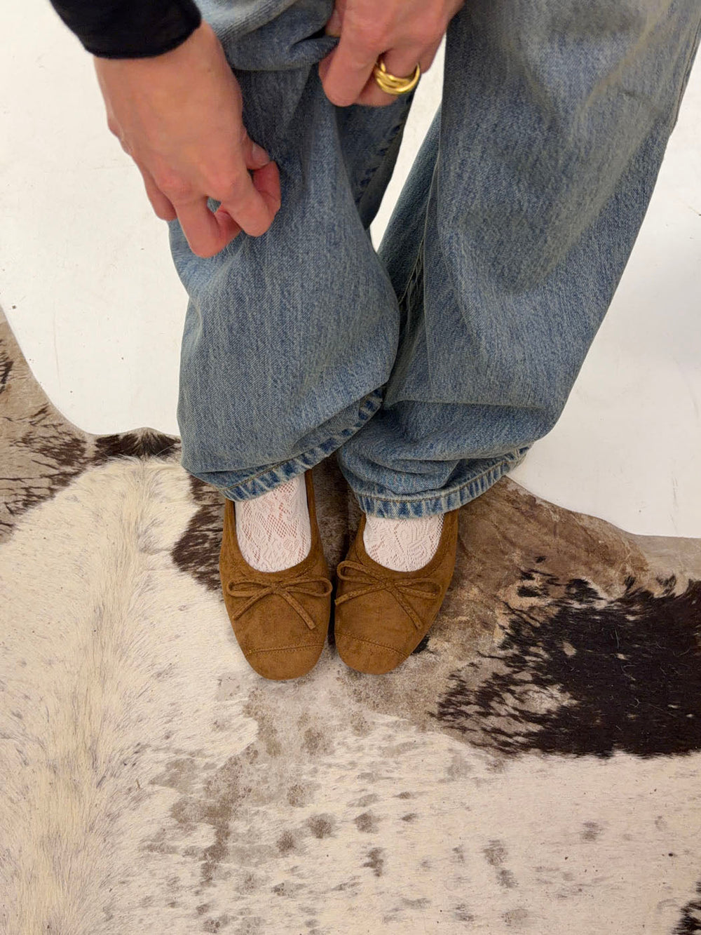 These classic brown suede ballerina flats are perfect for a feminine everyday look. They pair beautifully with any type of pants – from jeans to capris – and work well for both day and evening wear. The small bow detail at the front adds a girly touch and elevates the classic ballerina style.