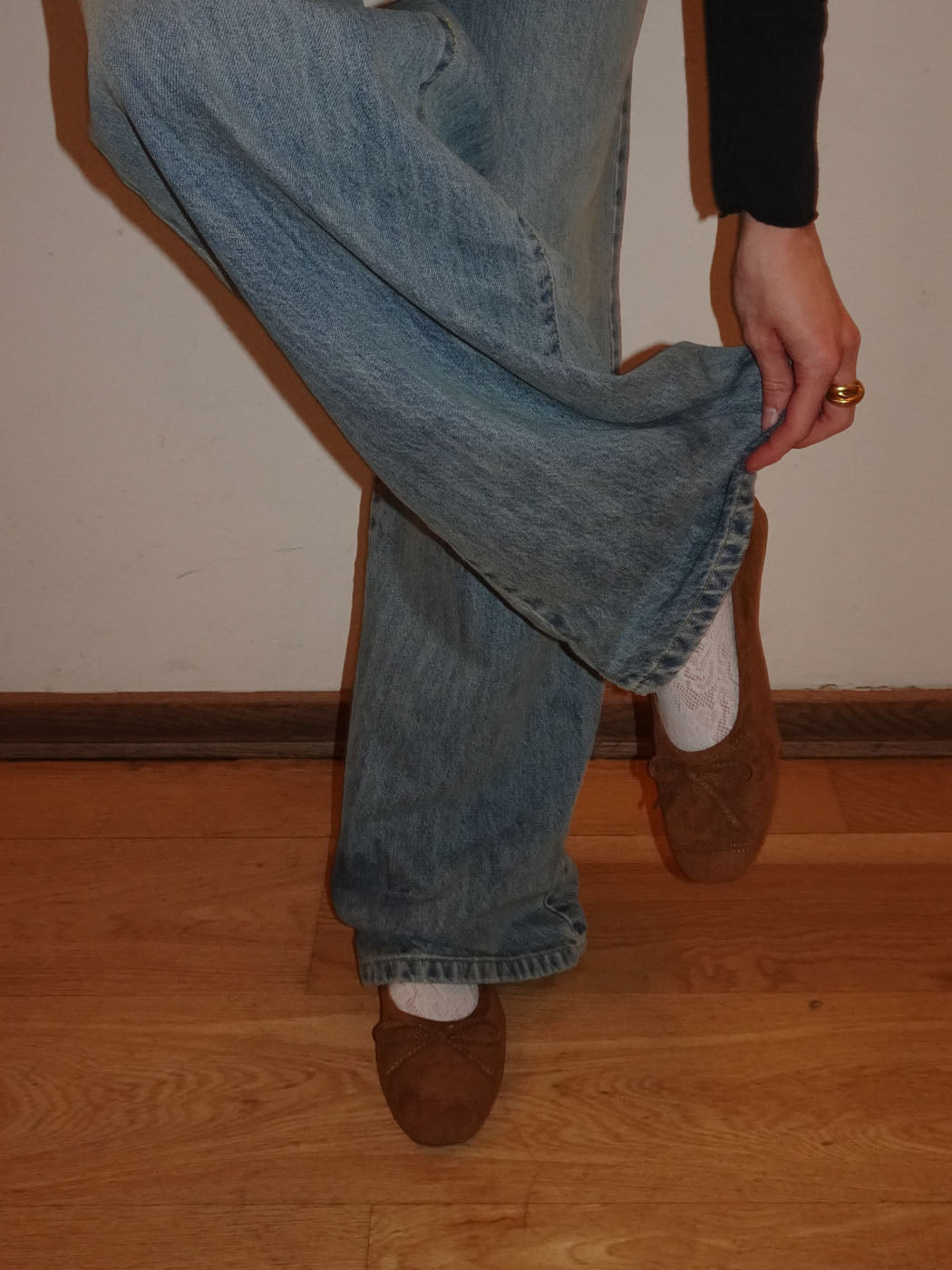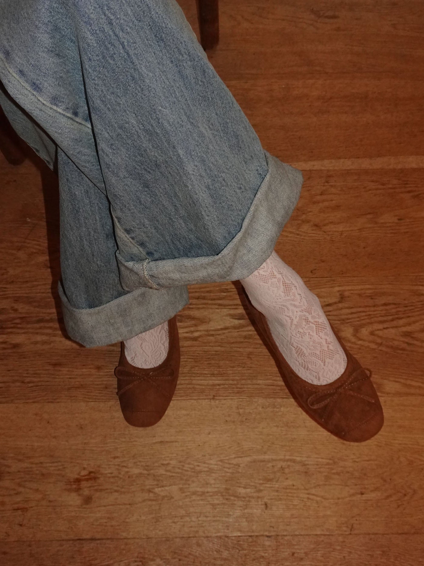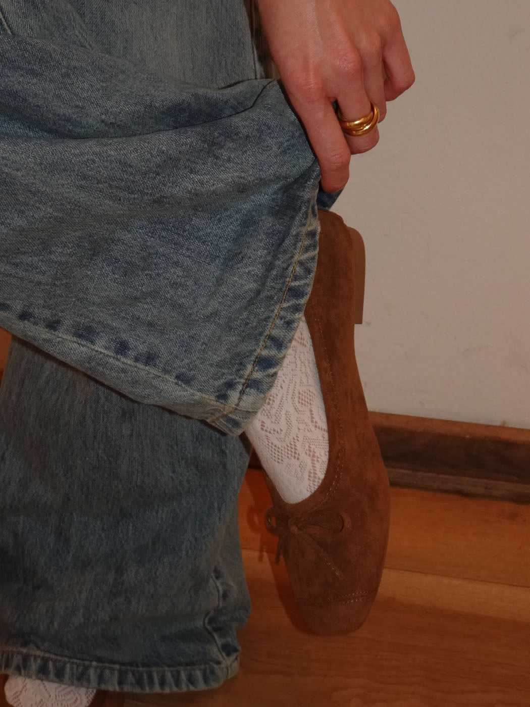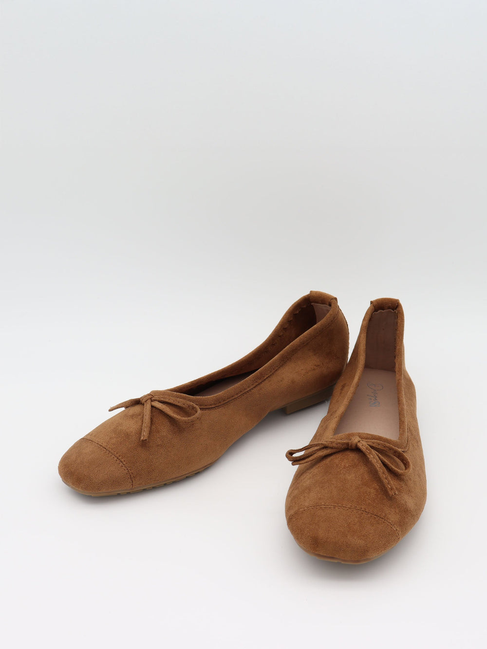 These classic brown suede ballerina flats are perfect for a feminine everyday look. They pair beautifully with any type of pants – from jeans to capris – and work well for both day and evening wear. The small bow detail at the front adds a girly touch and elevates the classic ballerina style.