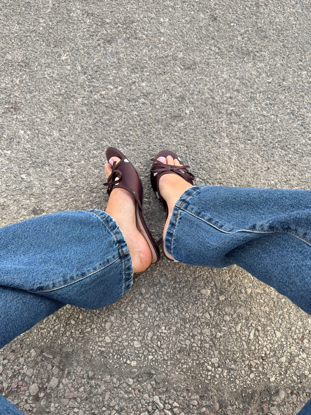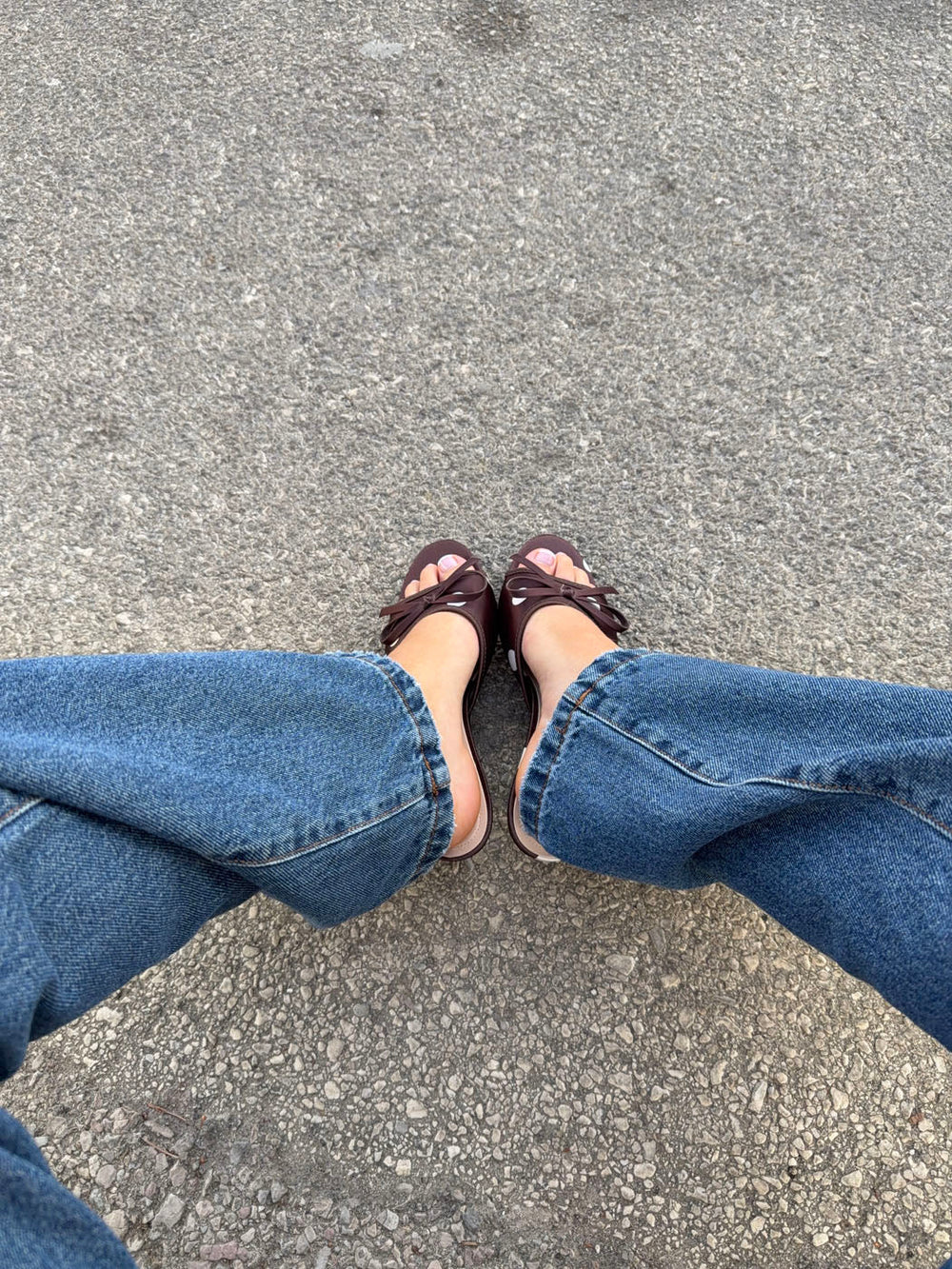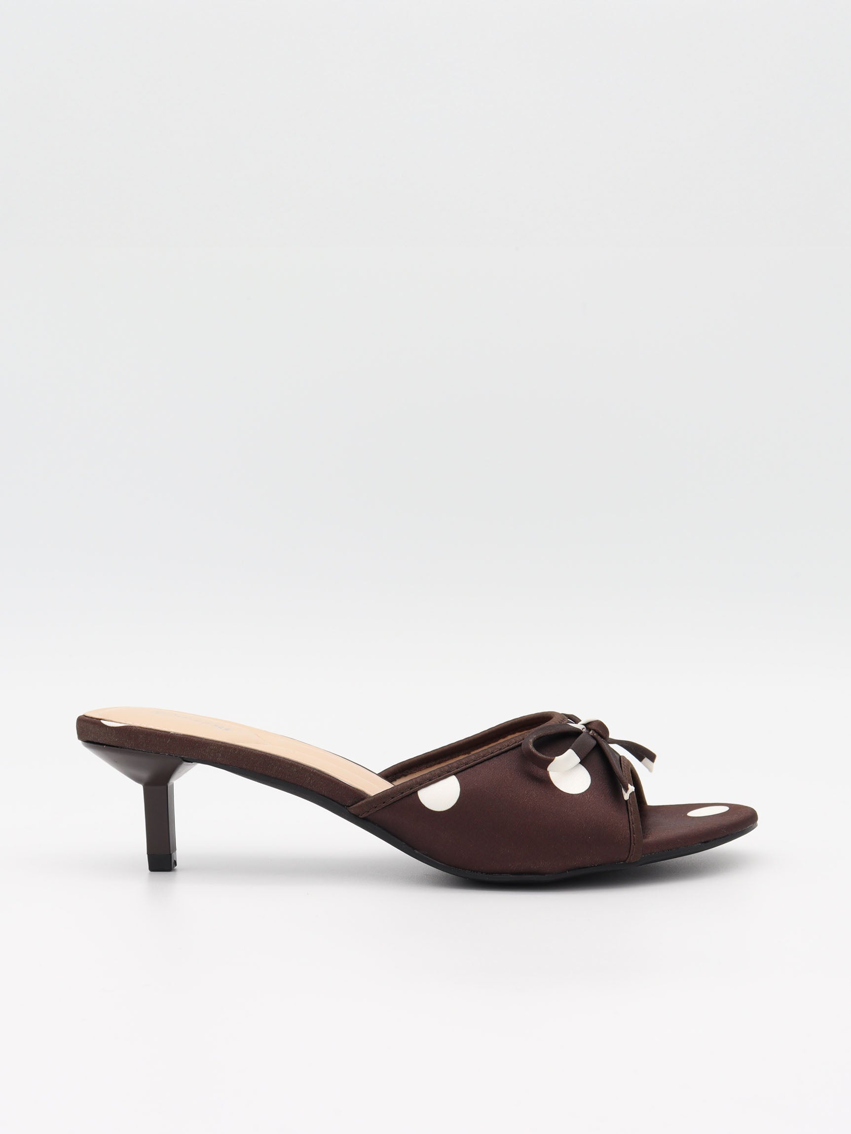 These elegant brown mules with white polka dots combine retro charm with modern sophistication. The open-toe design and delicate bow details create a playful yet refined look, while the slim heel adds just the right amount of height and grace.