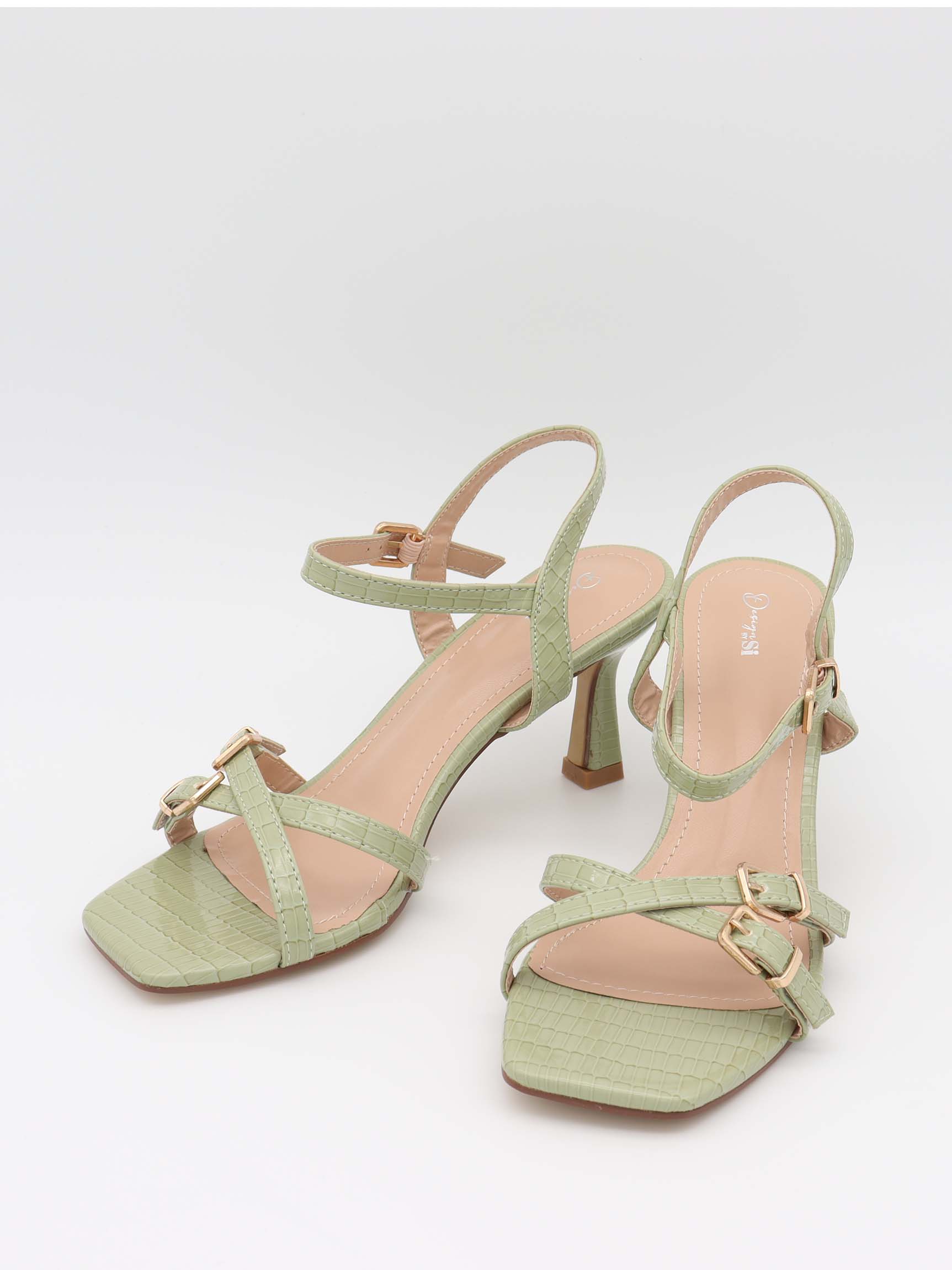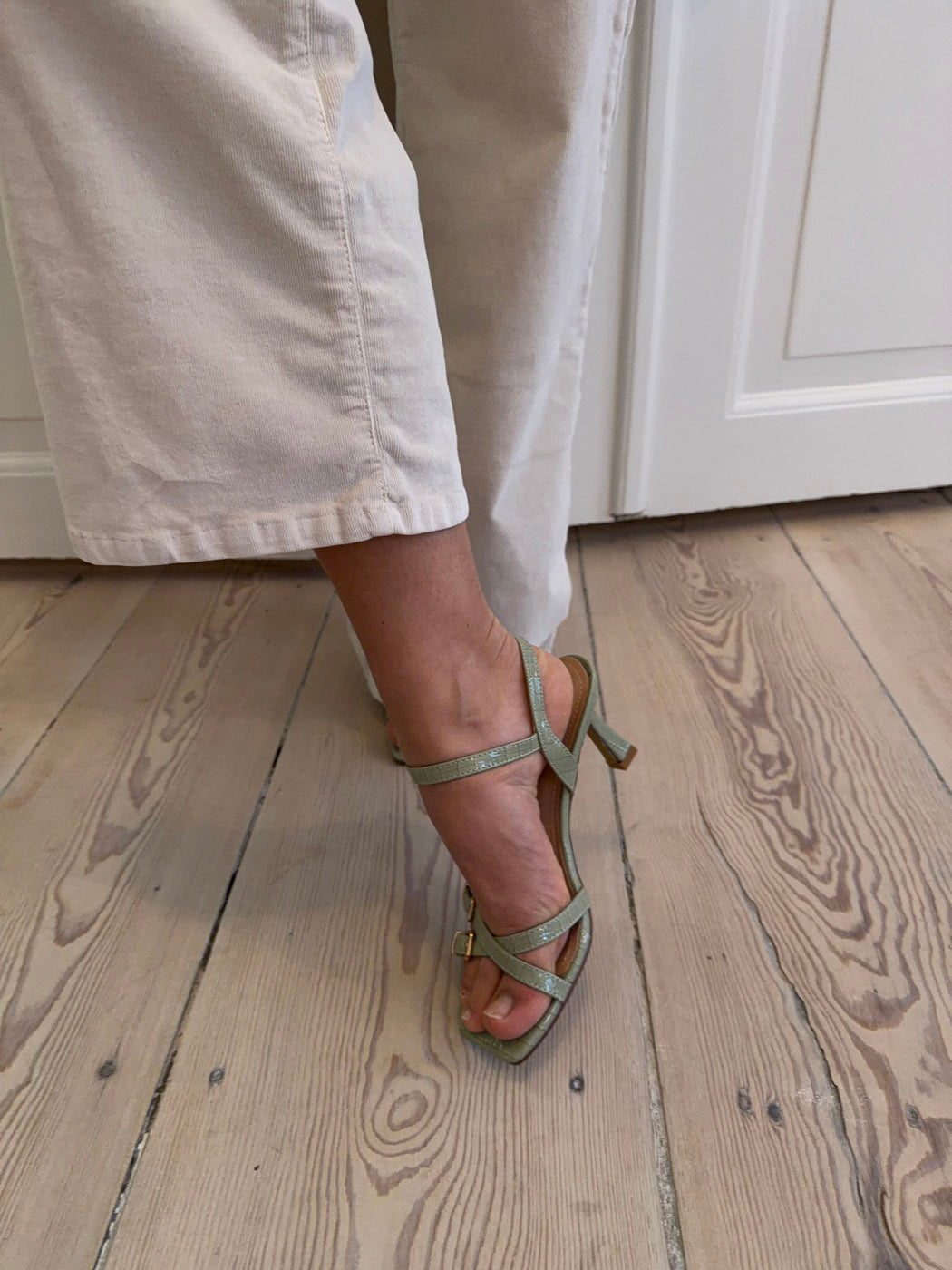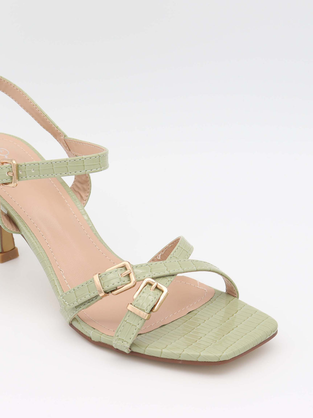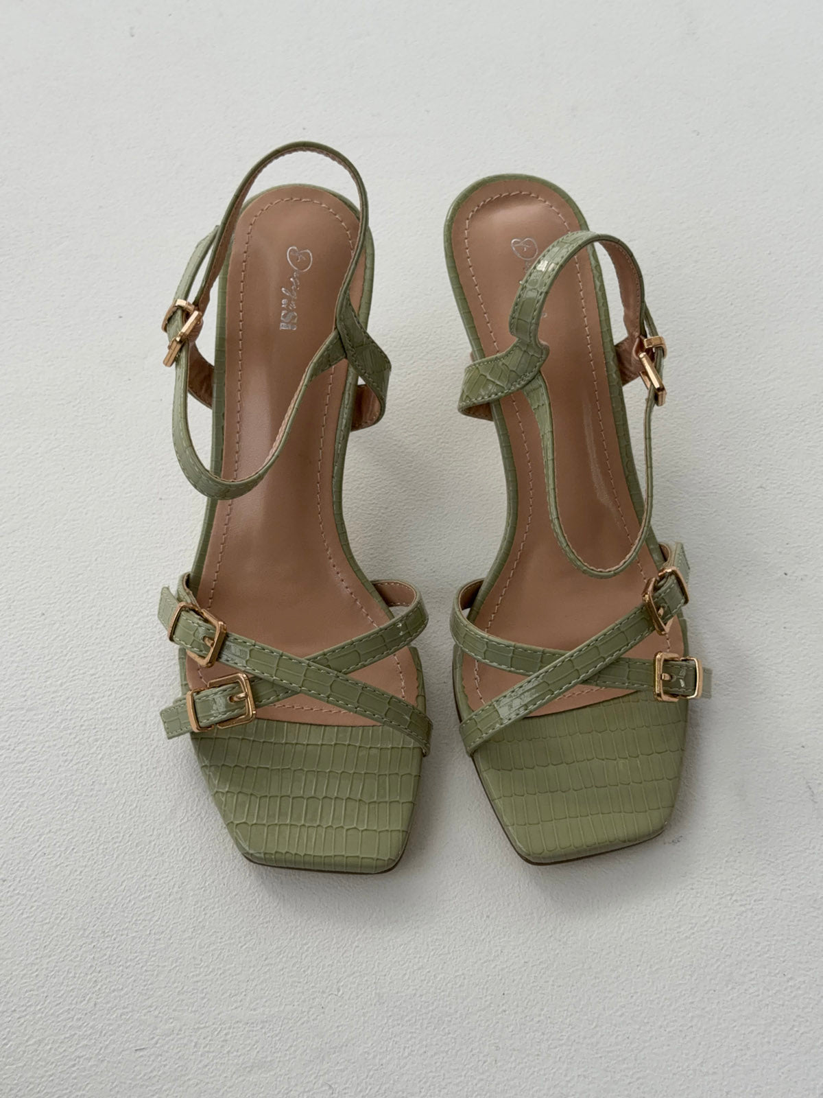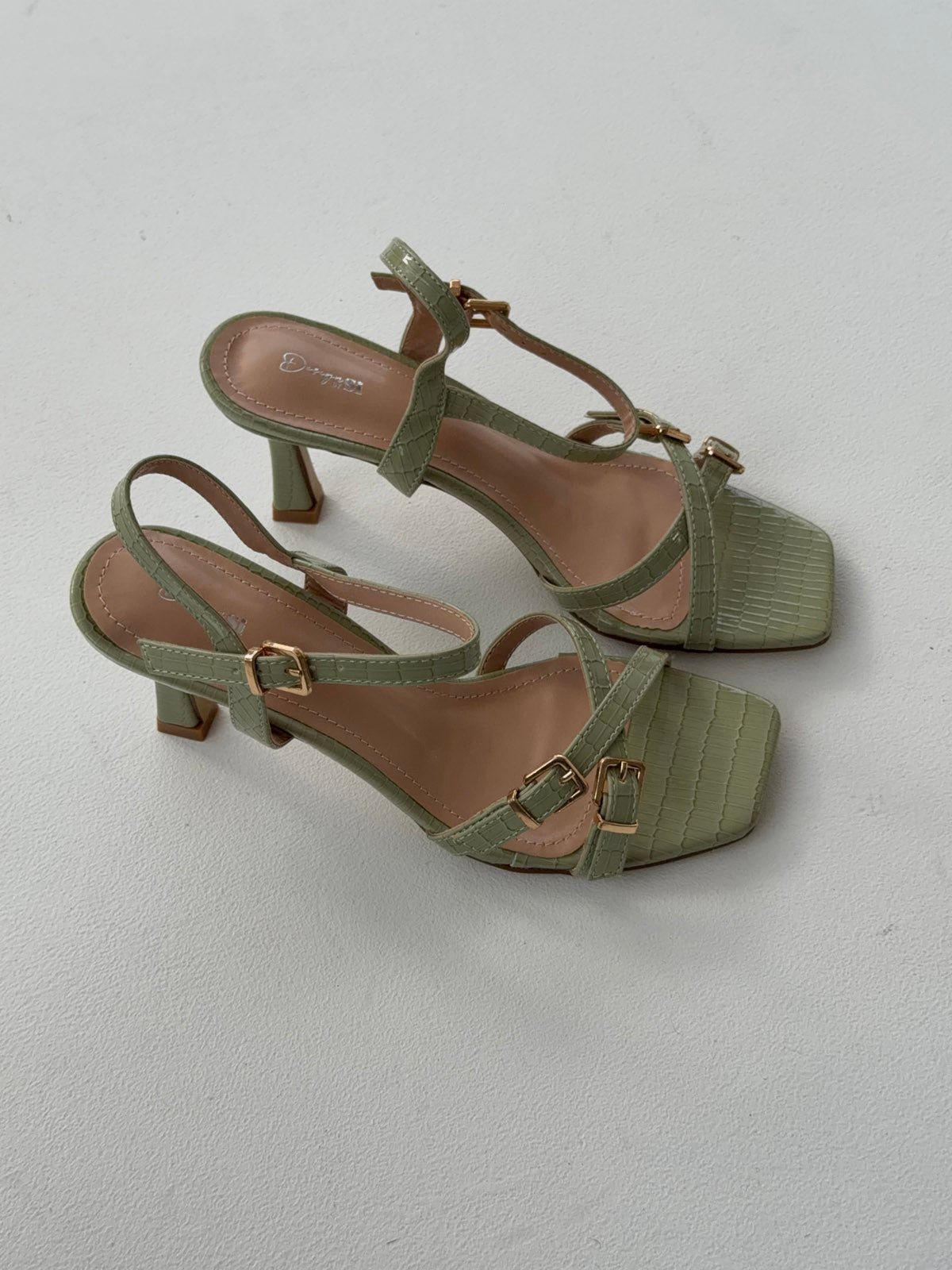 A classic strappy heel taken to new heights. The Katianna combines timeless elegance with edgy details. Both the crocodile-look texture and the multiple buckles elevate the shoe, while the color adds an exciting touch to any outfit. Perfect for those who want a playful and unique shoe for a party.