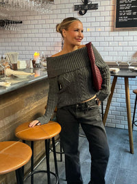 This knitted blouse has a relaxed fit and is made in the finest knitted pattern. It has a folded off-shoulder design and rib knit on the neckline, hem, and sleeve ends.