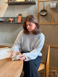 This knitted sweater is made from the softest material. The sweater has long sleeves and a loose look. It has an oversized fit.