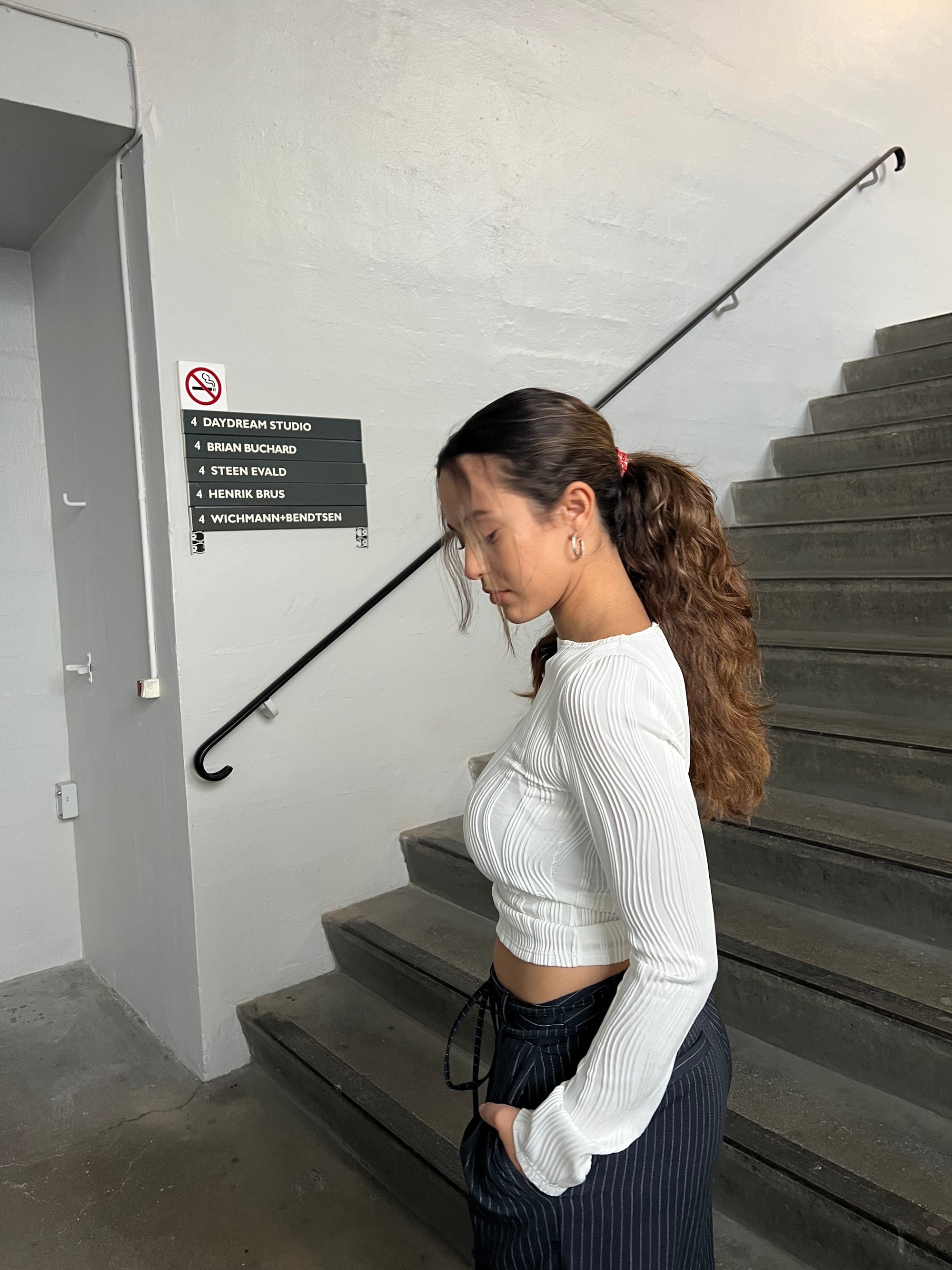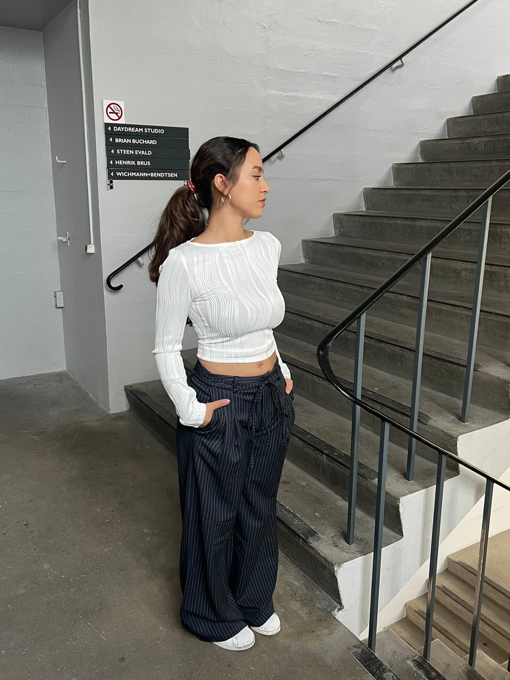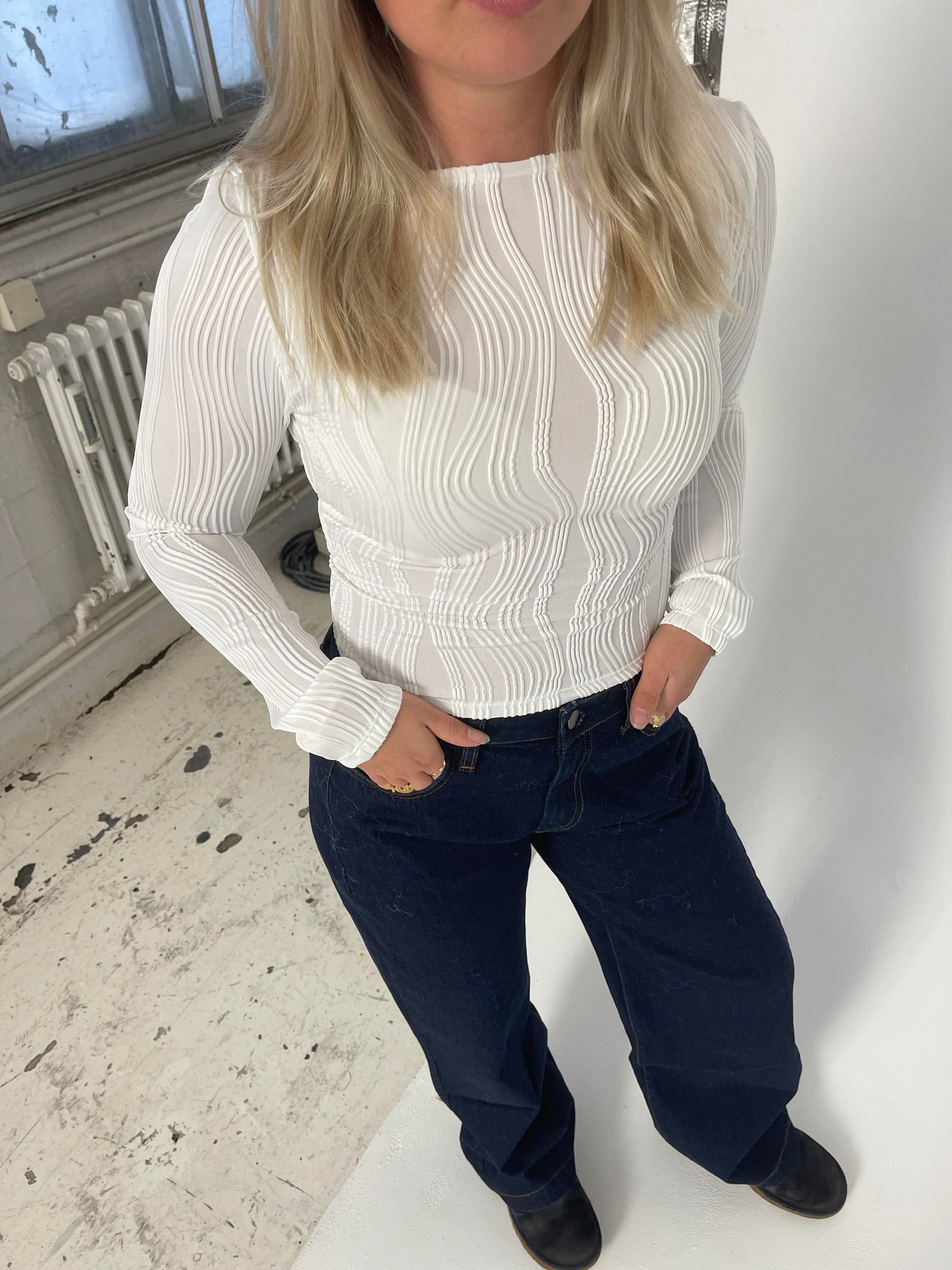 This blouse consists of the finest pattern, which makes it super unique. The blouse is designed with a round neckline and has long sleeves. It is stretchy and close-fitting.