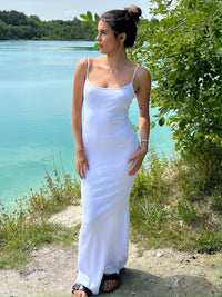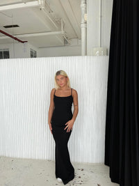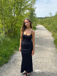 Long tight-fitting dress in ribbed fabric with thin straps