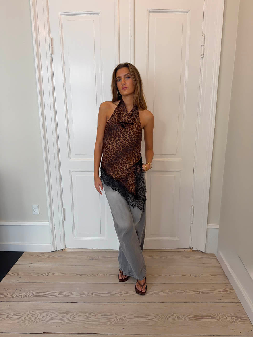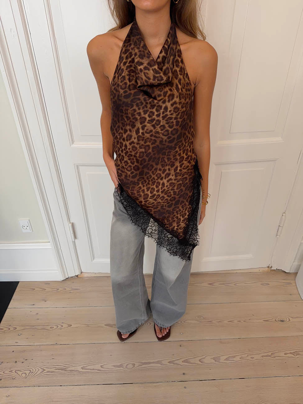 If you're aiming for an over-the-top look this winter, this top is perfect! The elegant waterfall halterneck creates a feminine silhouette, further enhanced by the lace detailing at the bottom. The side slit makes it ideal for an evening look where you want to stand out from the crowd.