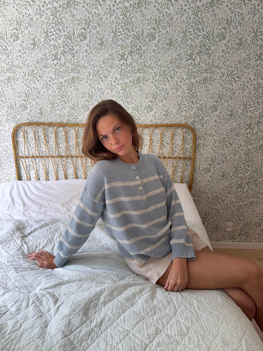 Evelisse knit with buttons - Light blue/white