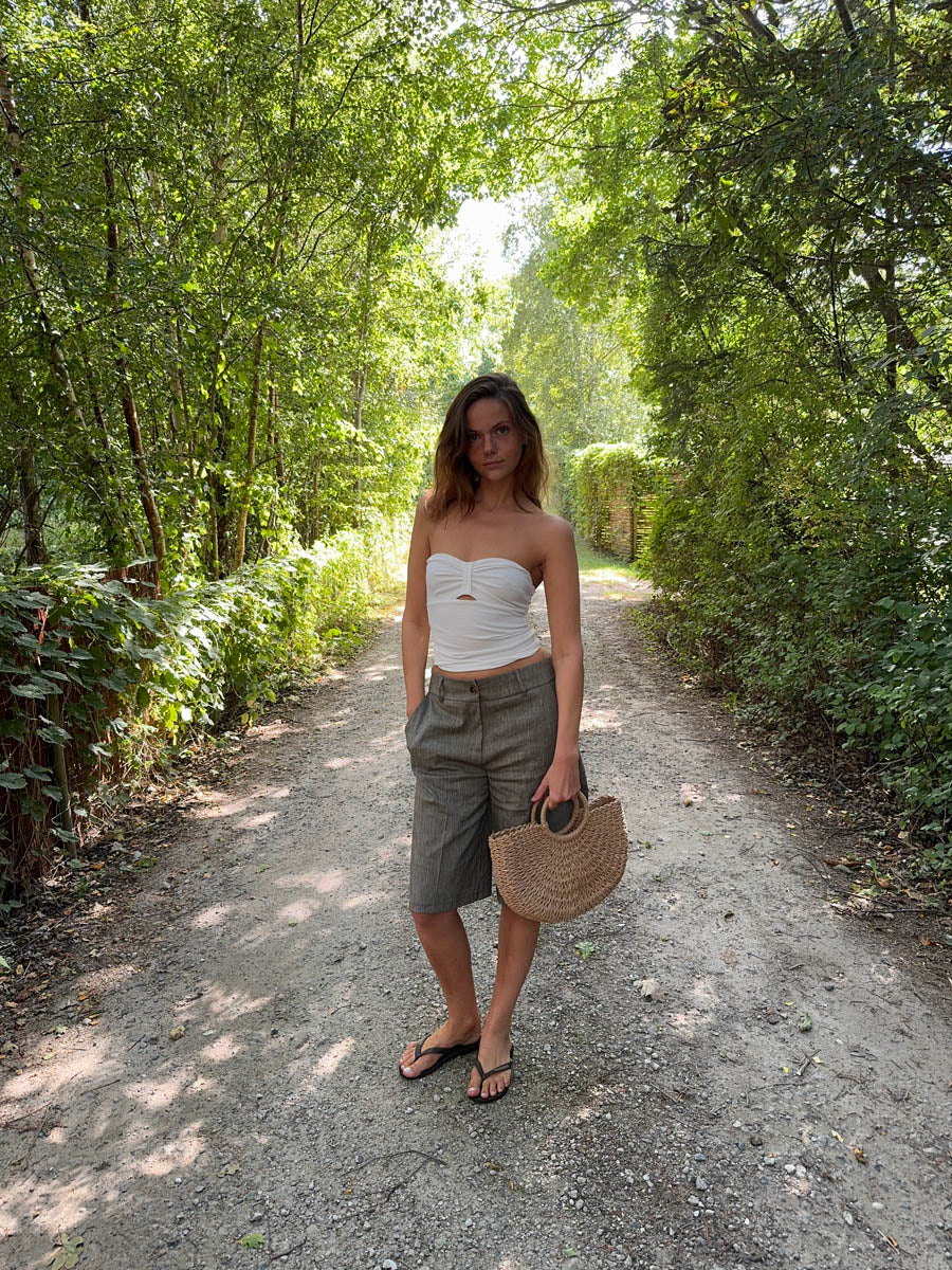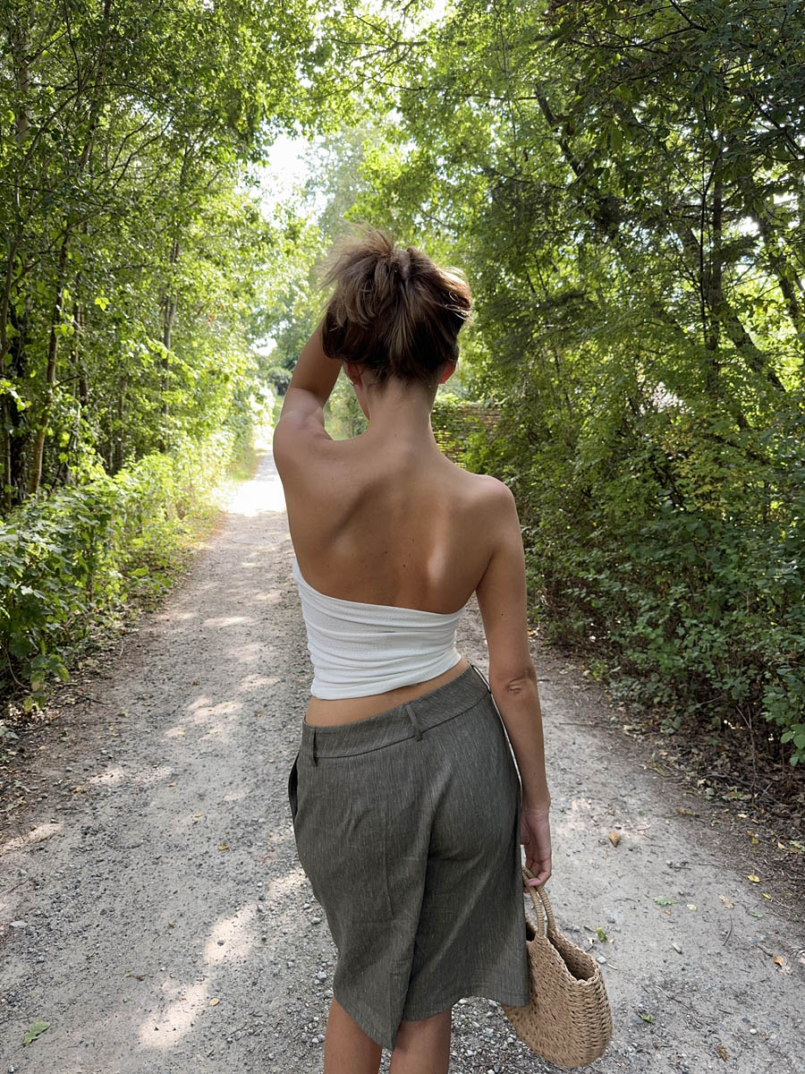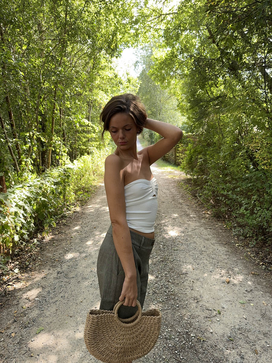 A timeless and airy bandeau top made for sunny days. The minimalist design makes it easy to style, while the fitted shape ensures a flattering look. Perfect for summer heat paired with high-waisted shorts, a light skirt, or loose trousers for a relaxed yet stylish outfit.