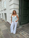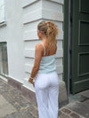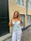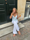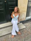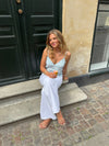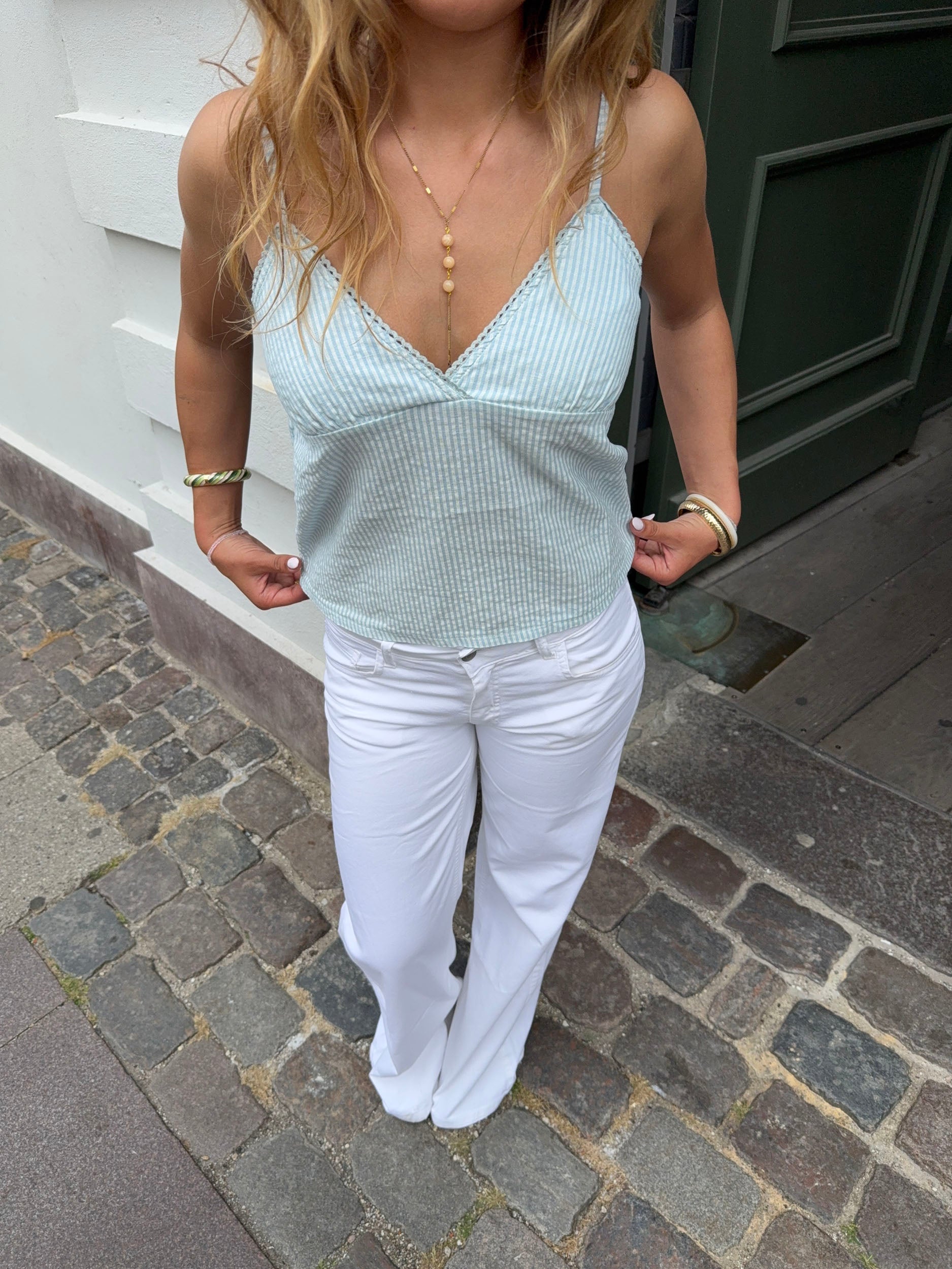 The top is designed in an airy fabric with delicate white and light blue stripes, giving it a fresh and classic look β perfect for warm days.