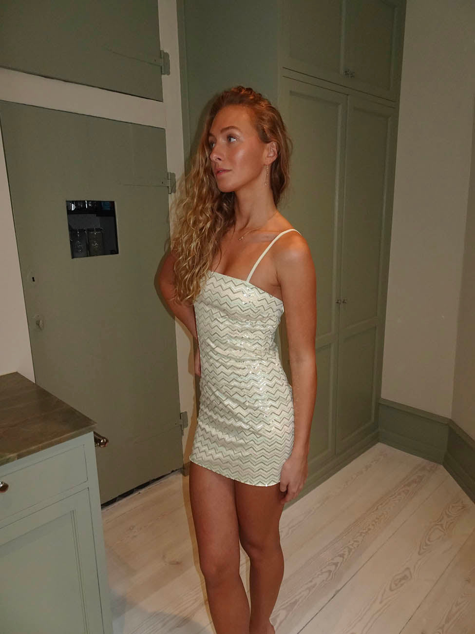 The slightly stretchy material ensures a comfortable fit, while the delicate thin straps add a feminine and summery touch. The silhouette drapes beautifully along the body, making the dress perfect for everything from summer parties and holidays to evenings out when you want to shine a little extra.
