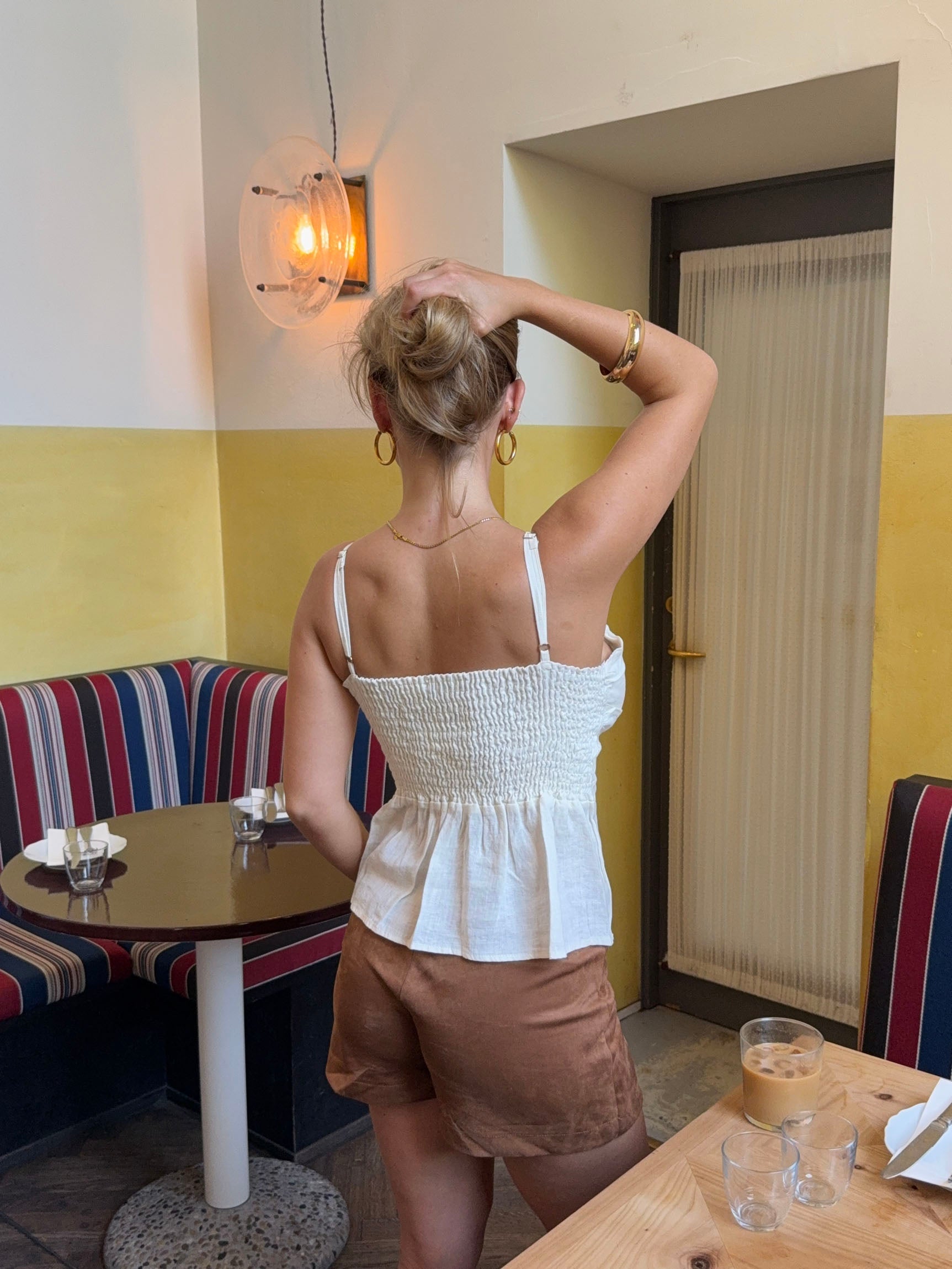 Light, airy, and with a beautiful silhouette – this white summer top is made for sunny days. It’s crafted from a soft linen blend that feels comfortable against the skin and offers a natural, relaxed look.