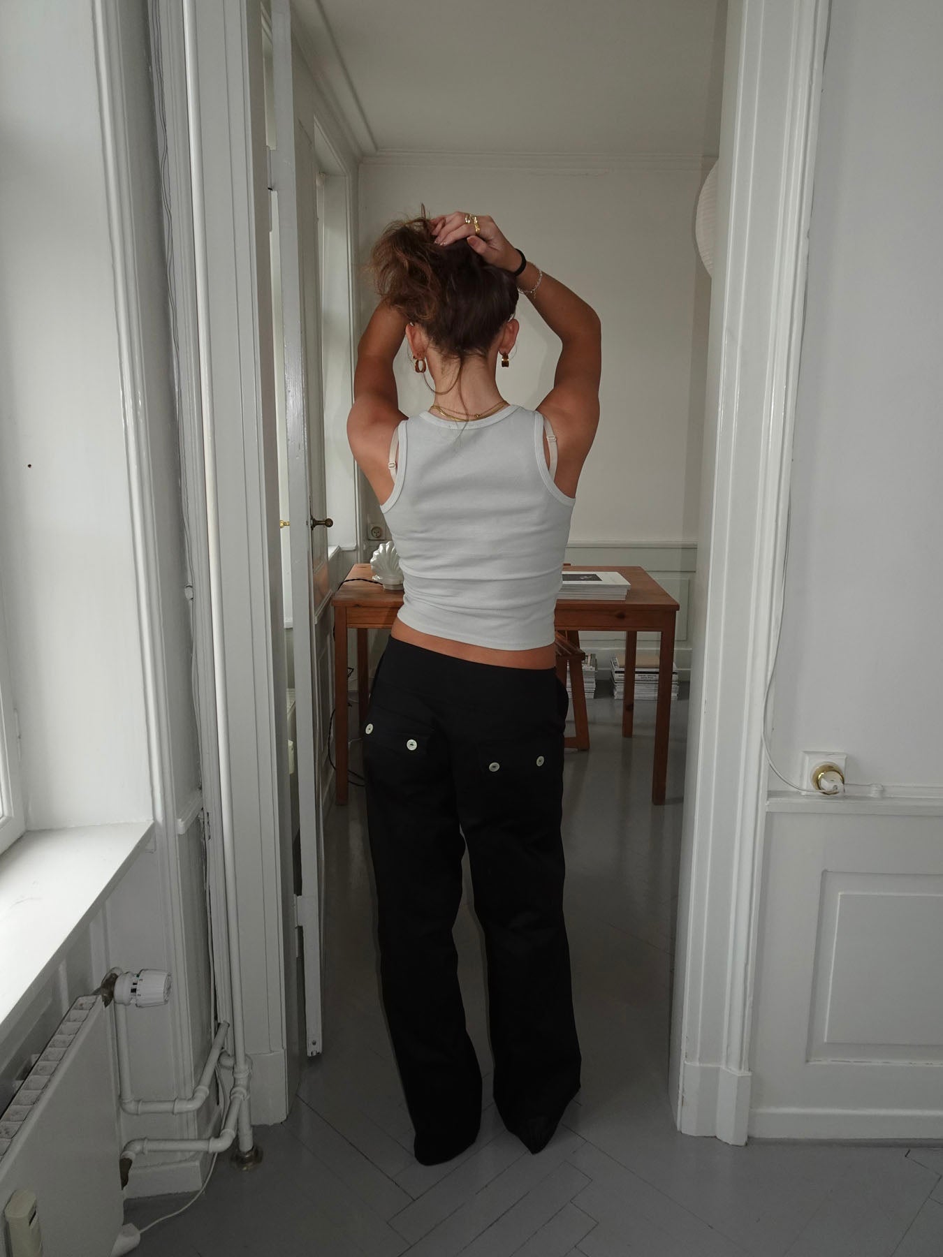 An elegant tank top in light grey, perfect for the modern wardrobe. Chiara combines Italian quality with a minimalist design that suits any occasion — from casual everyday looks to more formal events.