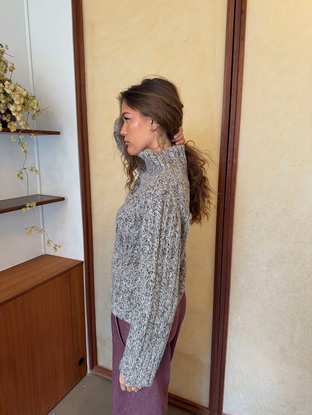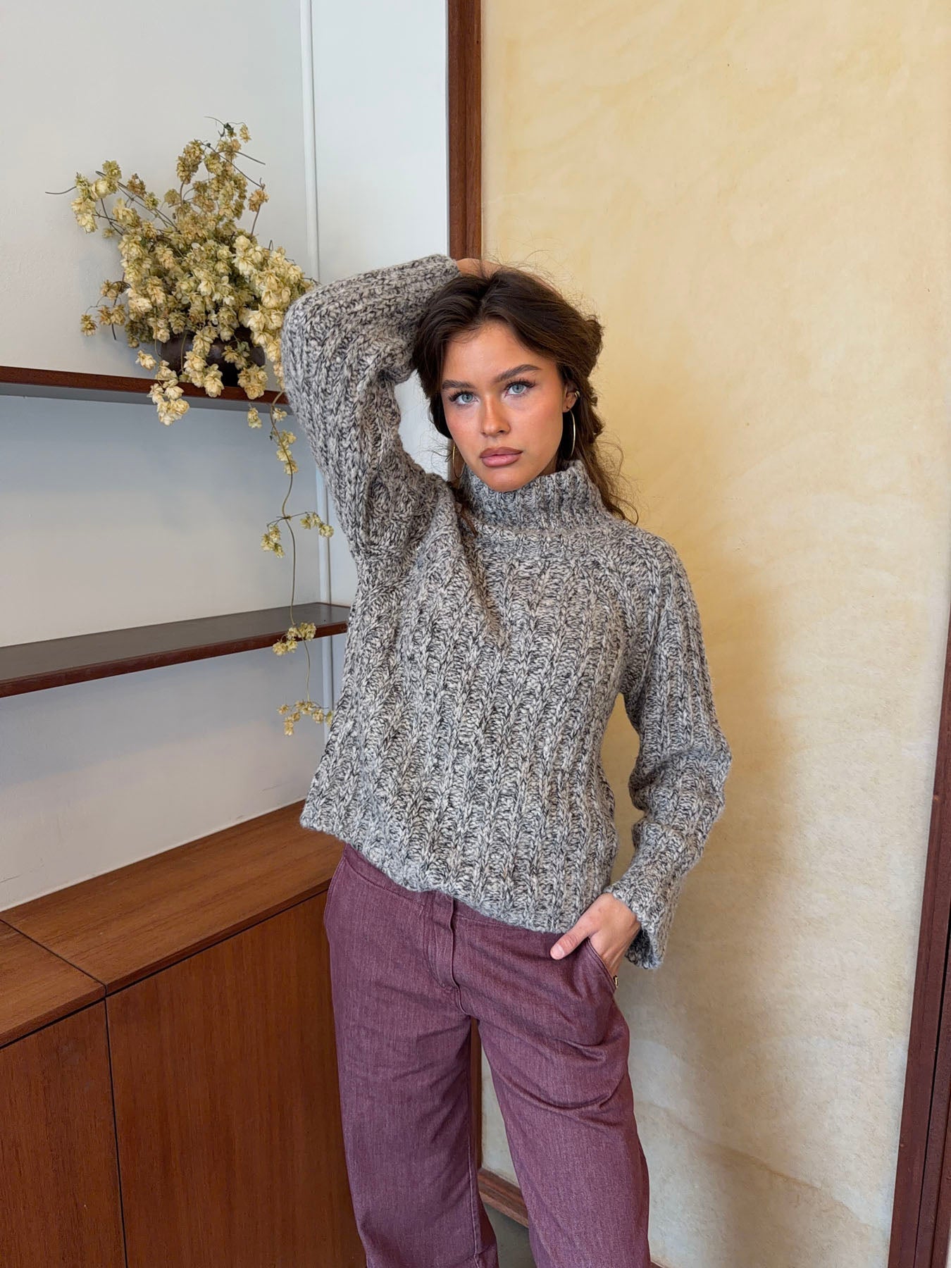 The Tikka sweater in grey is the perfect combination of warmth, comfort, and timeless design. Knitted in a thick ribbed texture, it offers structure and a rustic look while keeping you wonderfully warm. With its high neck, long sleeves, and soft wool blend, Tikka is ideal for cold days - perfect for both everyday wear and cozy weekends. The melange grey color makes it easy to style and gives it a classic Scandinavian look.