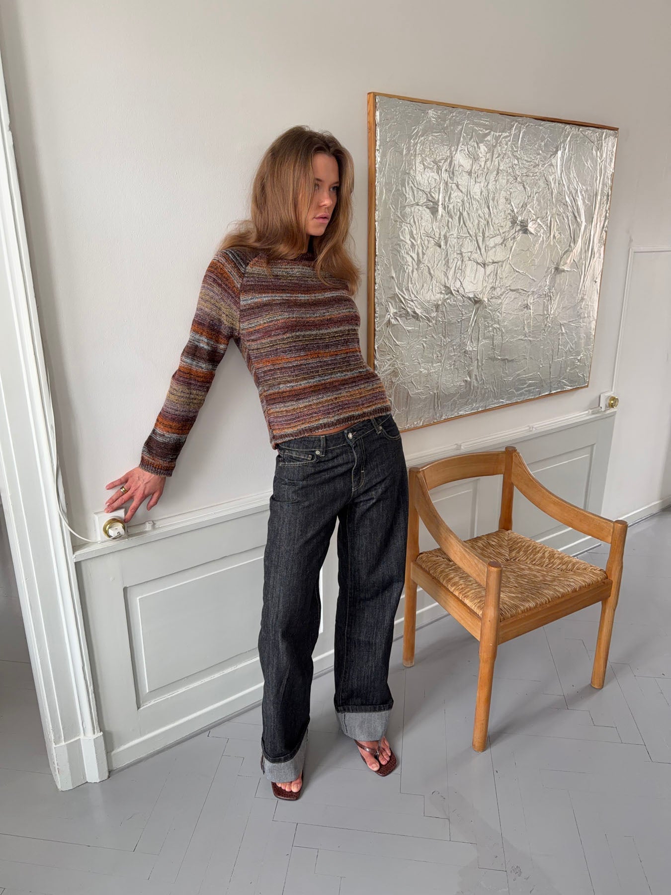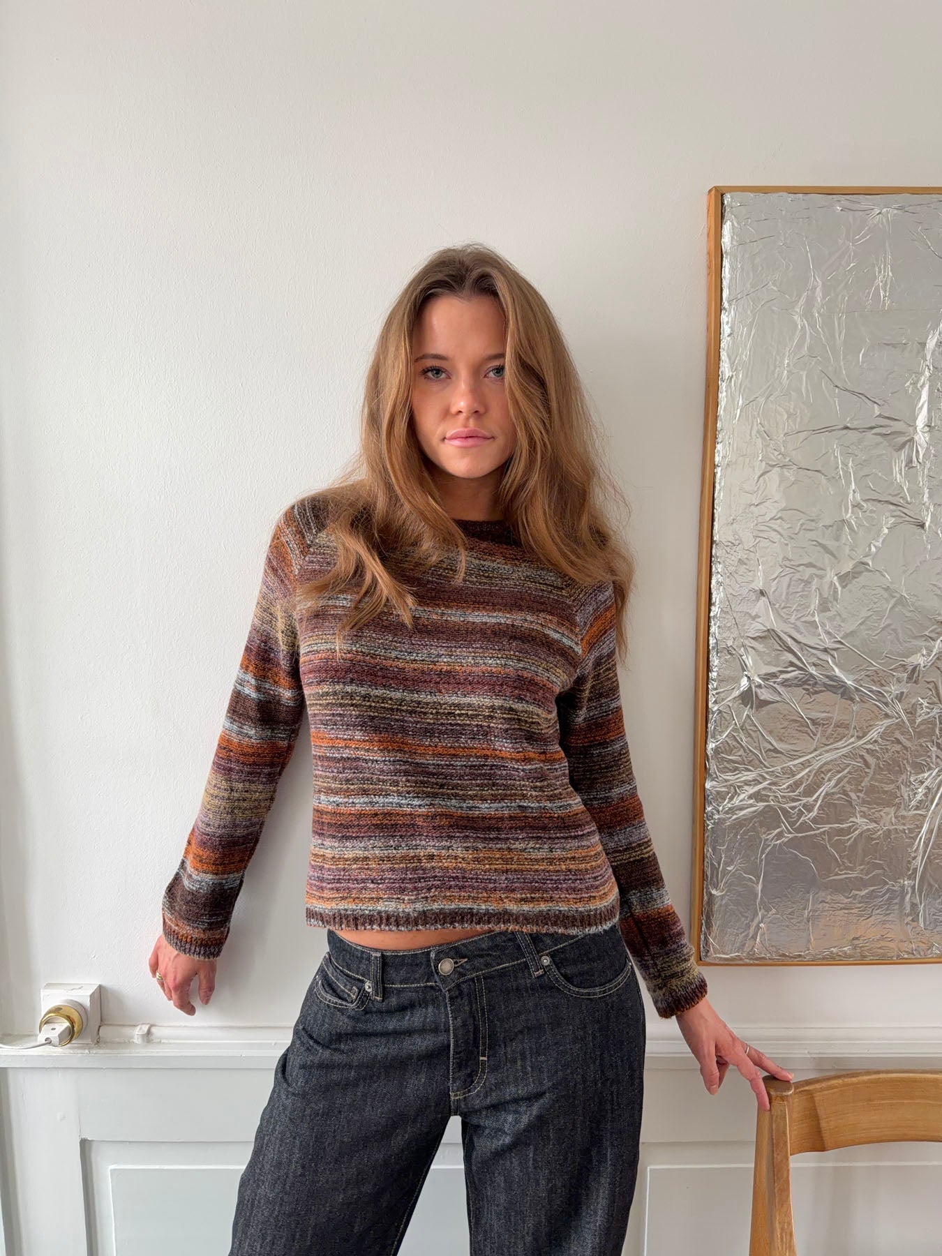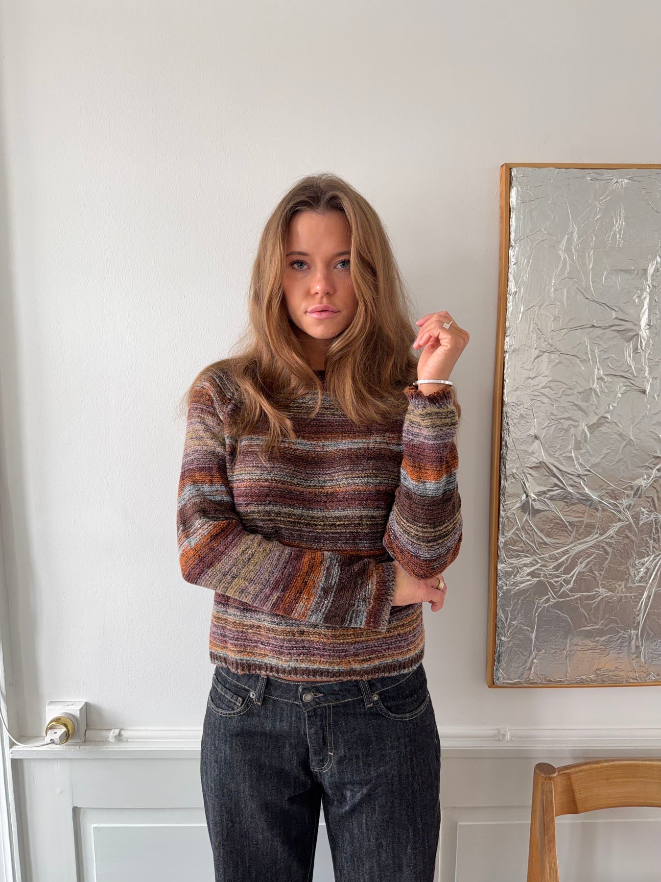 Iris is a beautiful striped knit in warm earth tones that combines comfort with timeless design — perfect for the cooler days when style and coziness go hand in hand.
