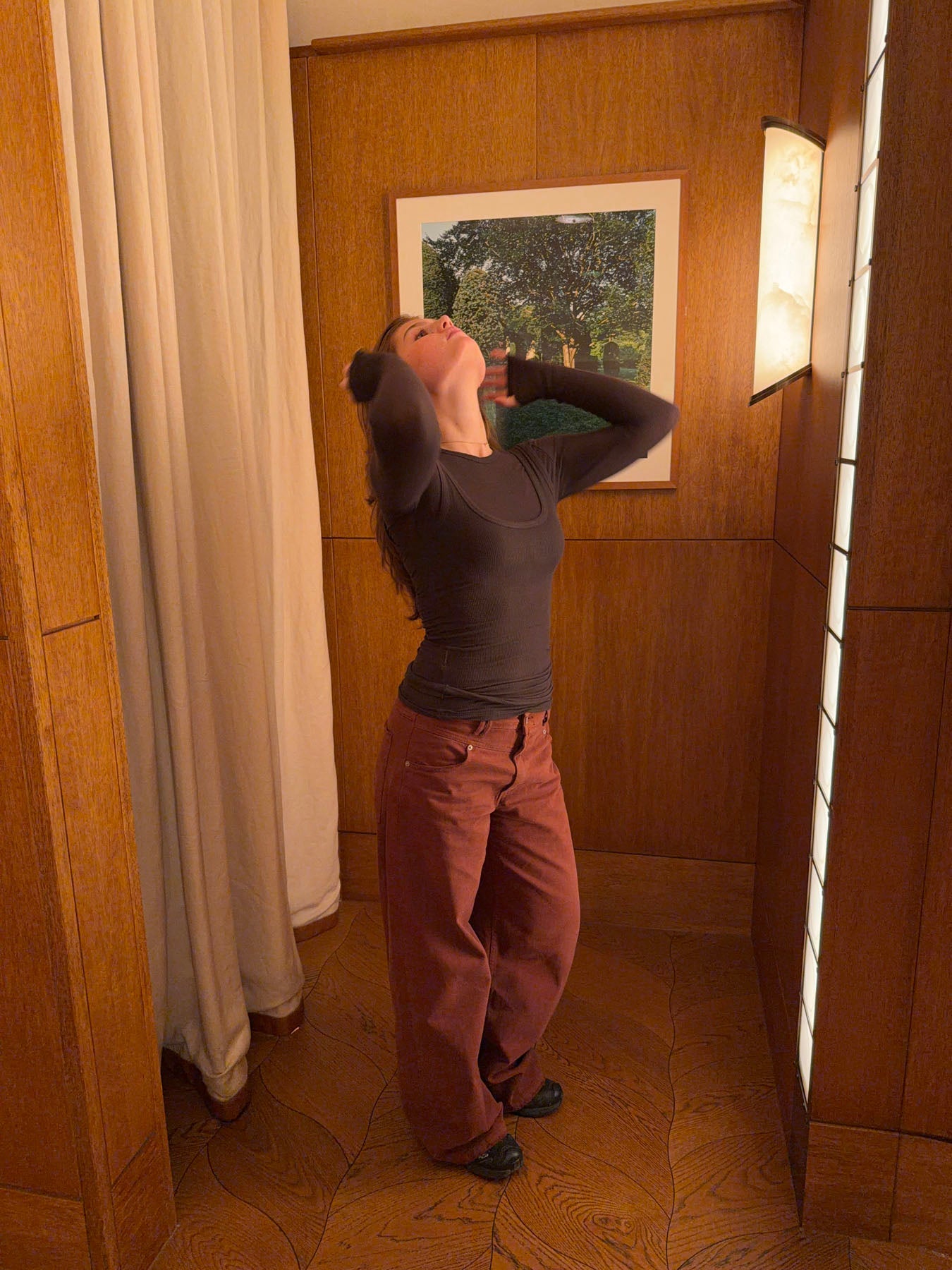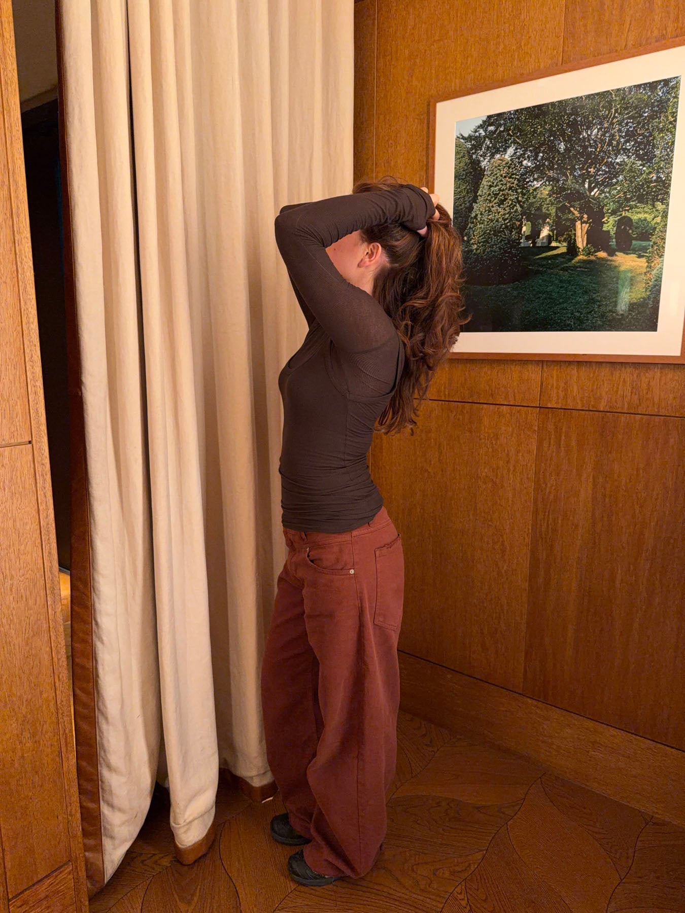 Upgrade your basic wardrobe with this elegant 2-piece set consisting of a long-sleeve T-shirt and a tank top — both in a deep chocolate brown color and made of a soft, stretch rib-knit fabric. A must-have for you who love comfort, quality and versatility in everyday life.