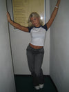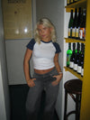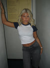 In our "copenhagen" drop you can find this t-shirt in white with navy sleeves. This t-shirt is made from a soft material and has a tight and short fit