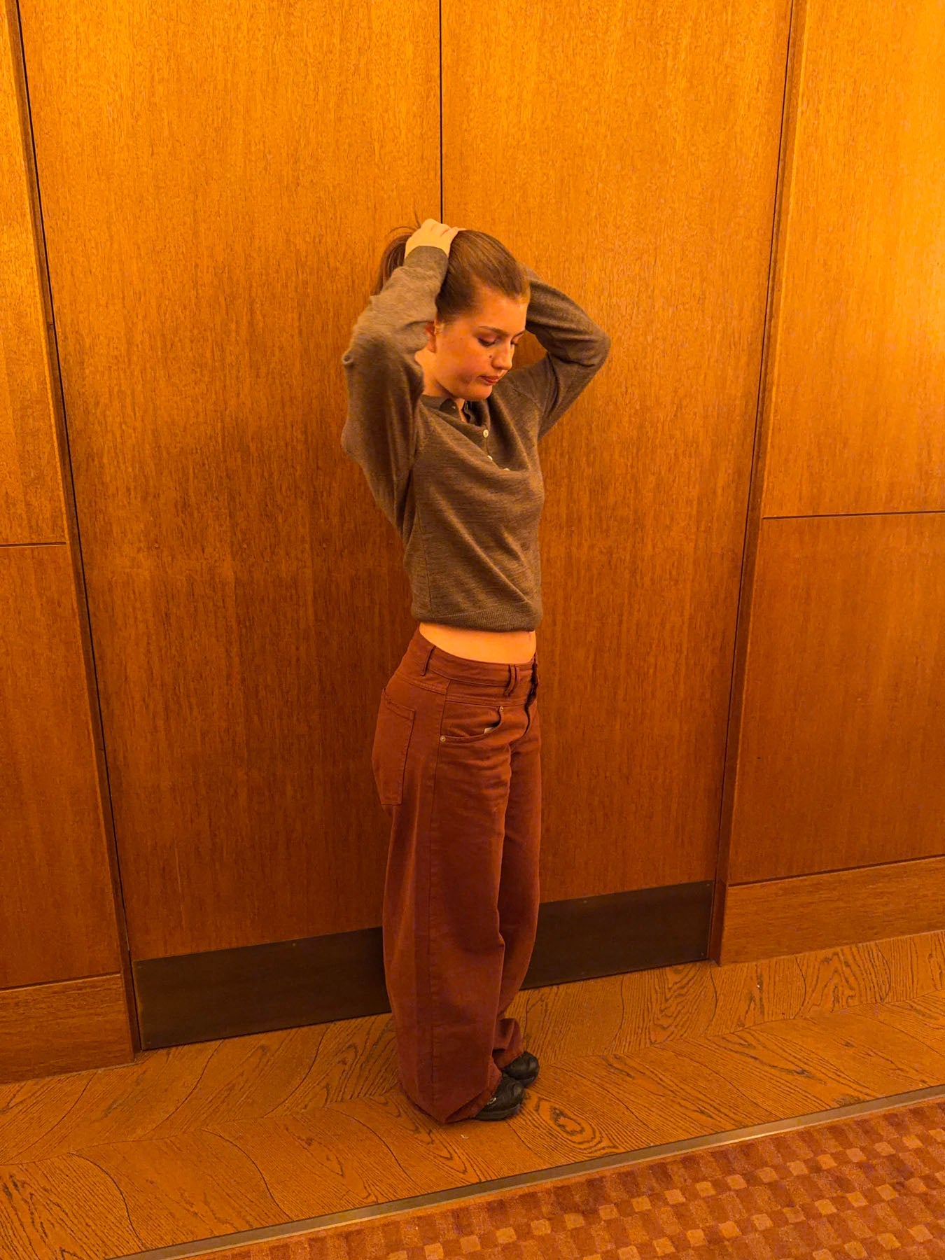 This elegant knit polo in a warm brown melange tone is a timeless piece that combines classic style with high comfort. The fine, lightweight knit quality provides a luxurious and soft feel, while the polo collar and front button closure add a sophisticated touch.