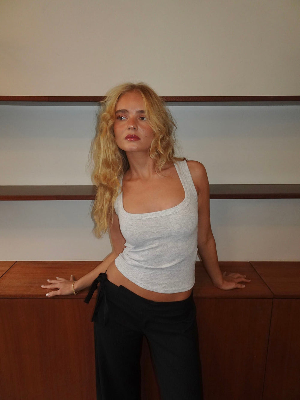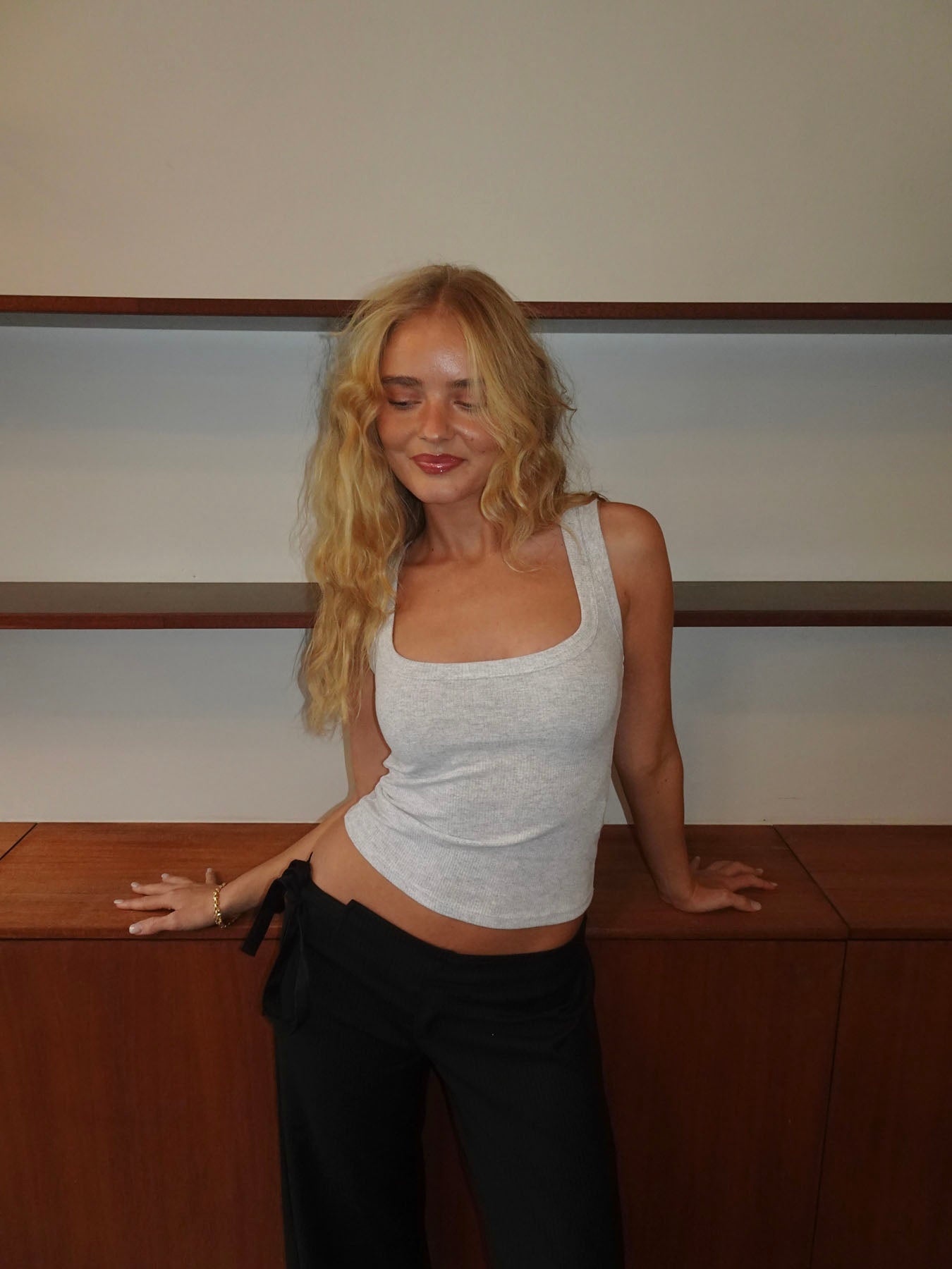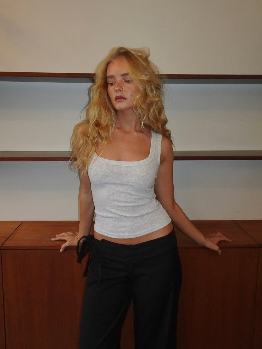 This grey ribbed top is a timeless basic that combines comfort with clean simplicity. The soft, stretchy fabric offers a flattering fit, making it perfect for everyday wear or layered styling. The classic cut with a round neckline and wide straps adds a sporty yet feminine touch that pairs effortlessly with everything from jeans to skirts. A must-have wardrobe essential — simple, versatile, and always in style.