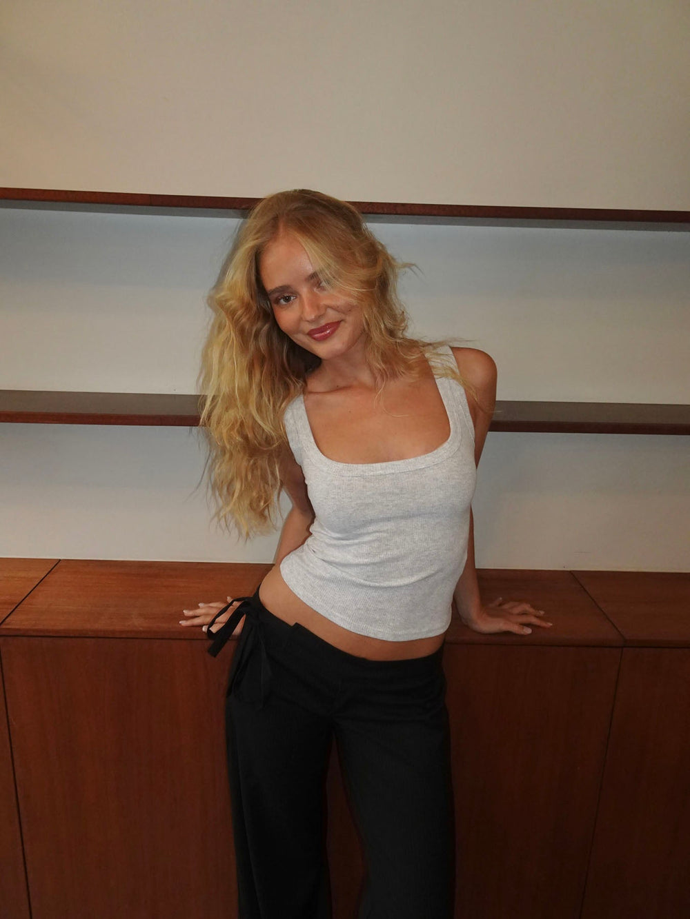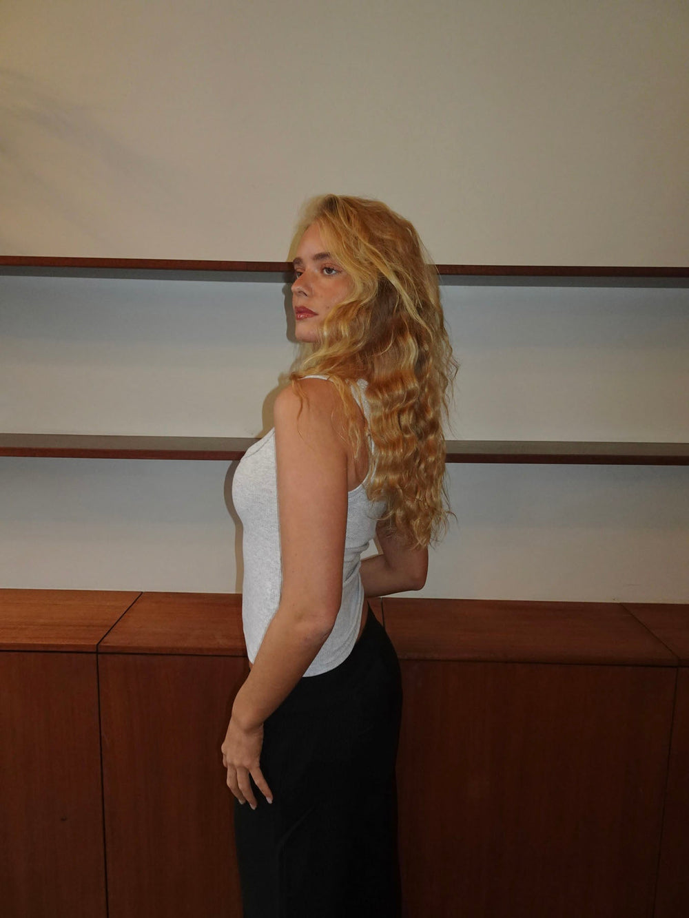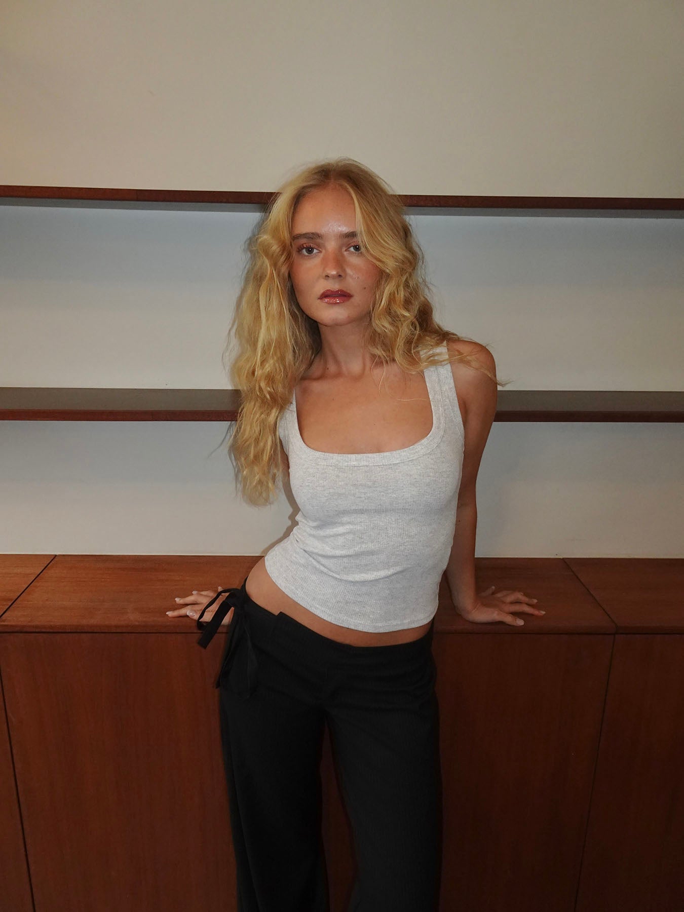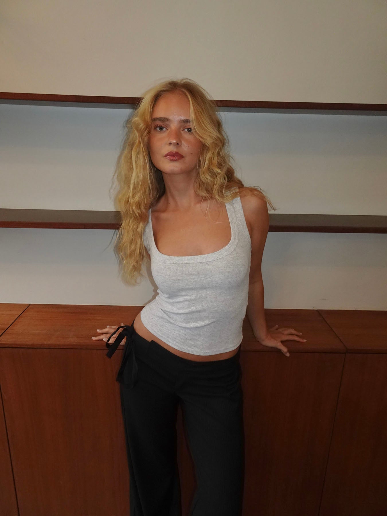 This grey ribbed top is a timeless basic that combines comfort with clean simplicity. The soft, stretchy fabric offers a flattering fit, making it perfect for everyday wear or layered styling. The classic cut with a round neckline and wide straps adds a sporty yet feminine touch that pairs effortlessly with everything from jeans to skirts. A must-have wardrobe essential — simple, versatile, and always in style.
