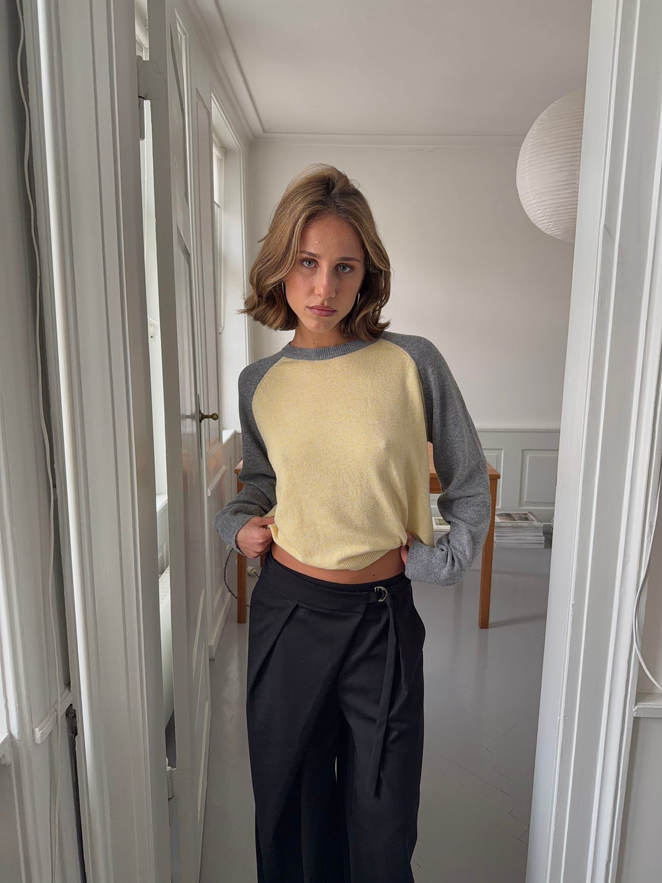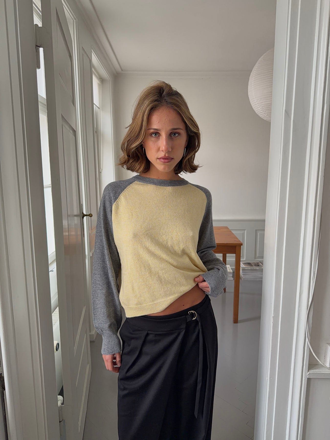 Oliva knit blouse - Grey/yellow