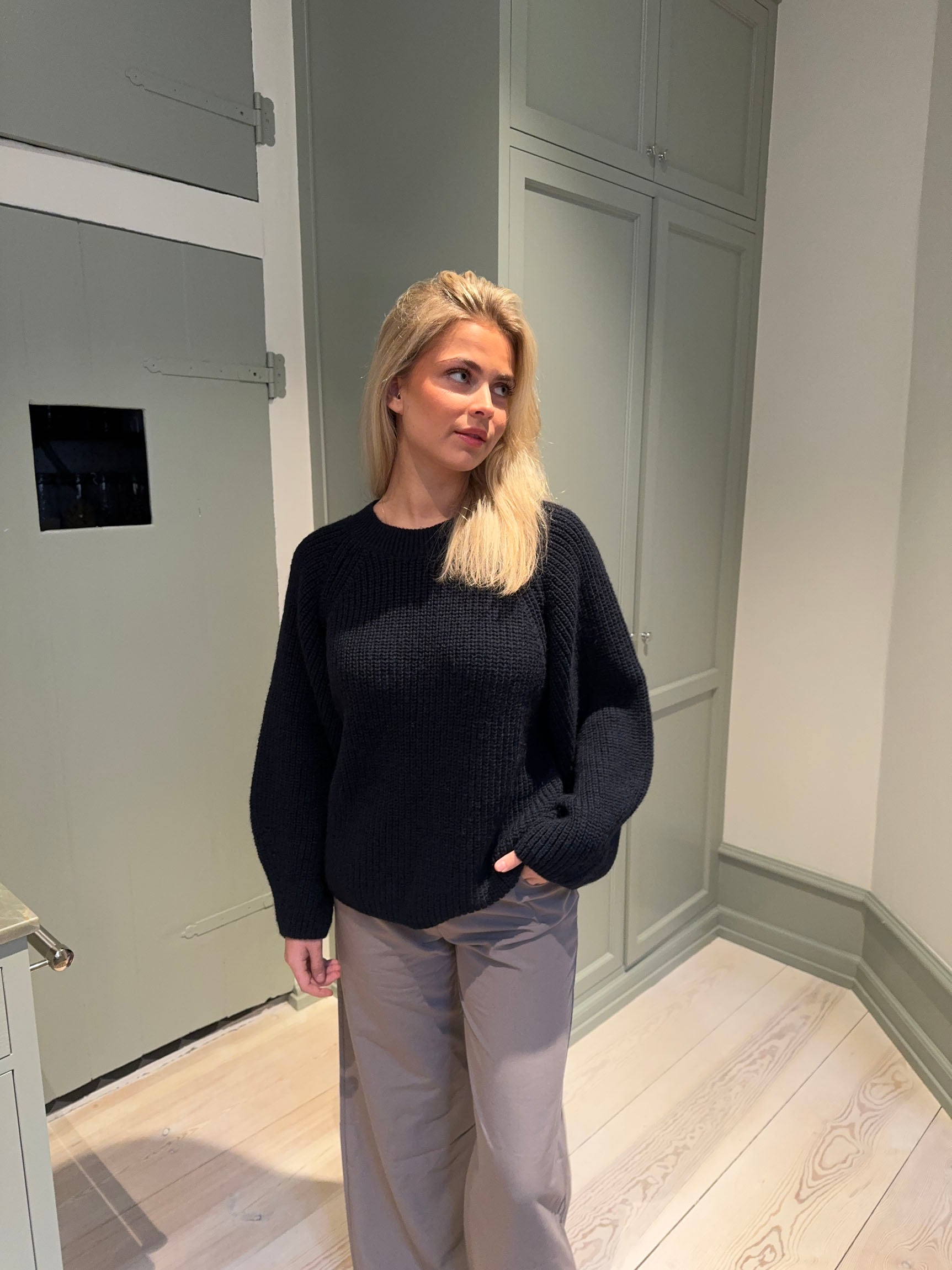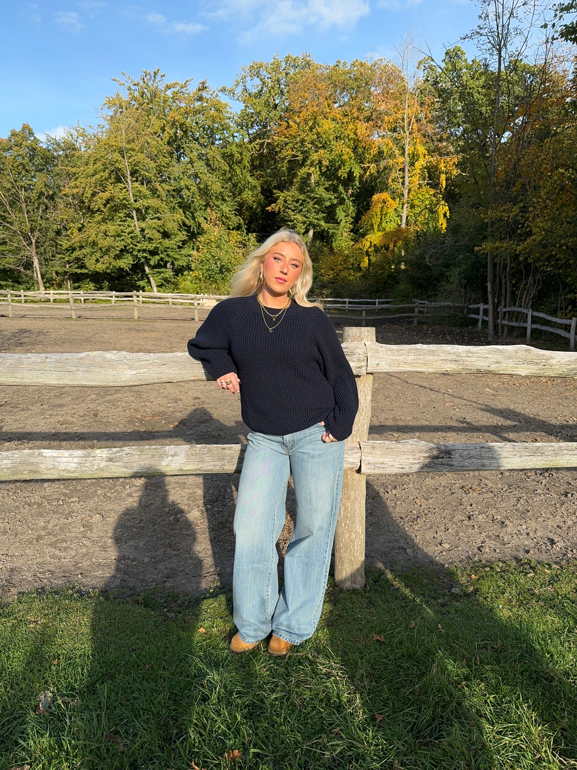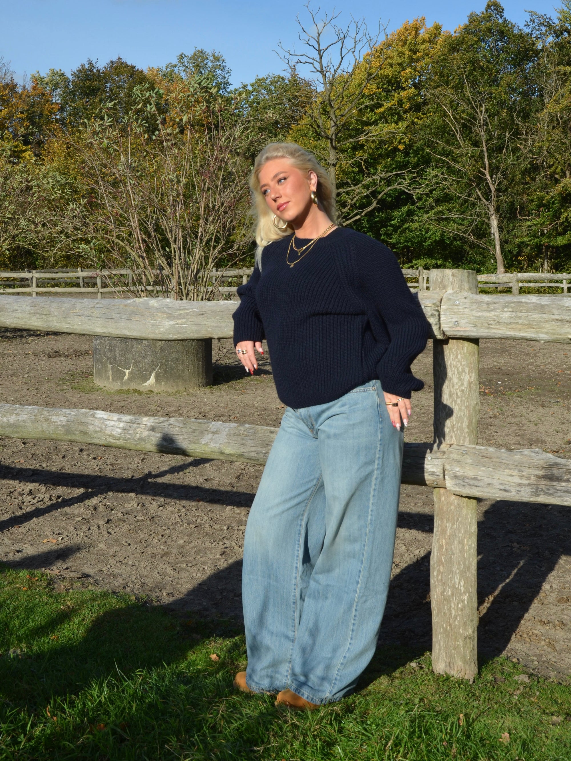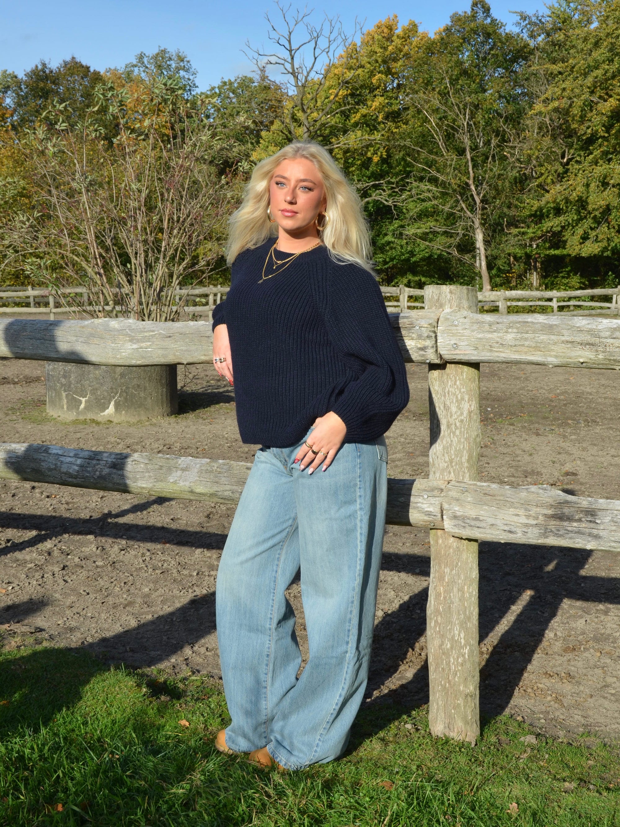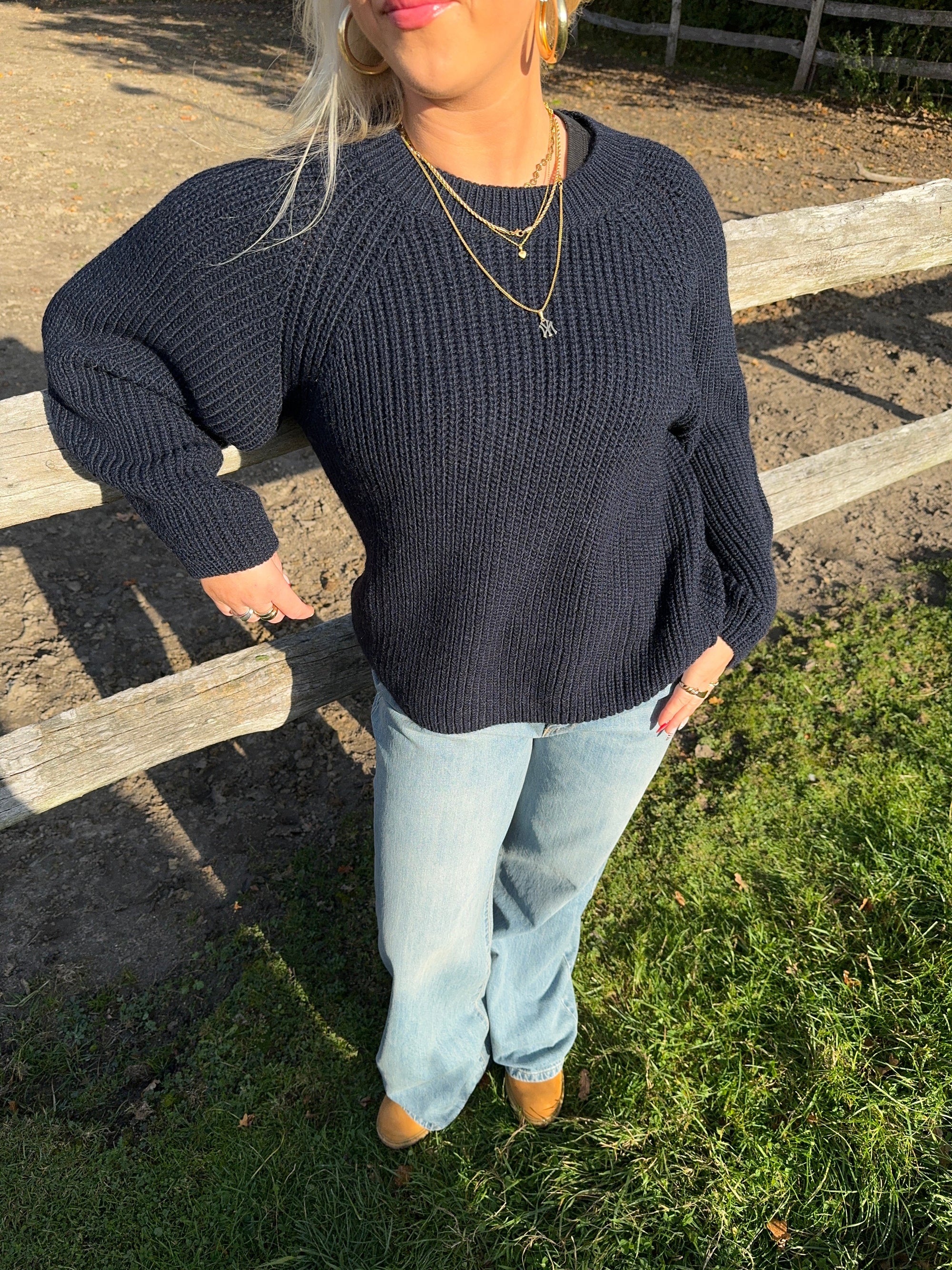 Upgrade your wardrobe with our navy knit sweater that combines style and comfort! This pullover features balloon sleeves that add a trendy touch to your look. The ribbed details at the neckline give a sophisticated finish, while the heavy material ensures you stay warm all day.