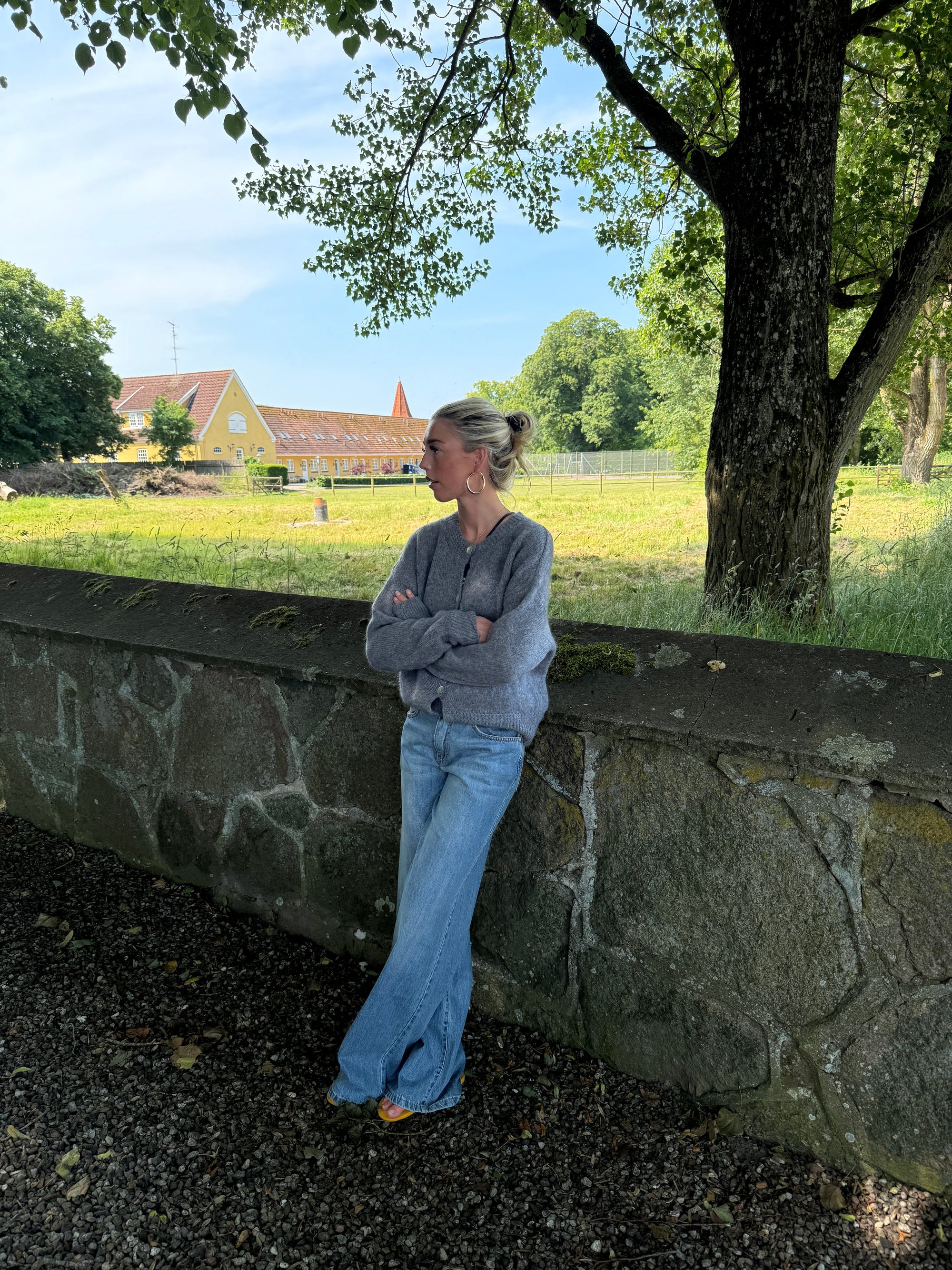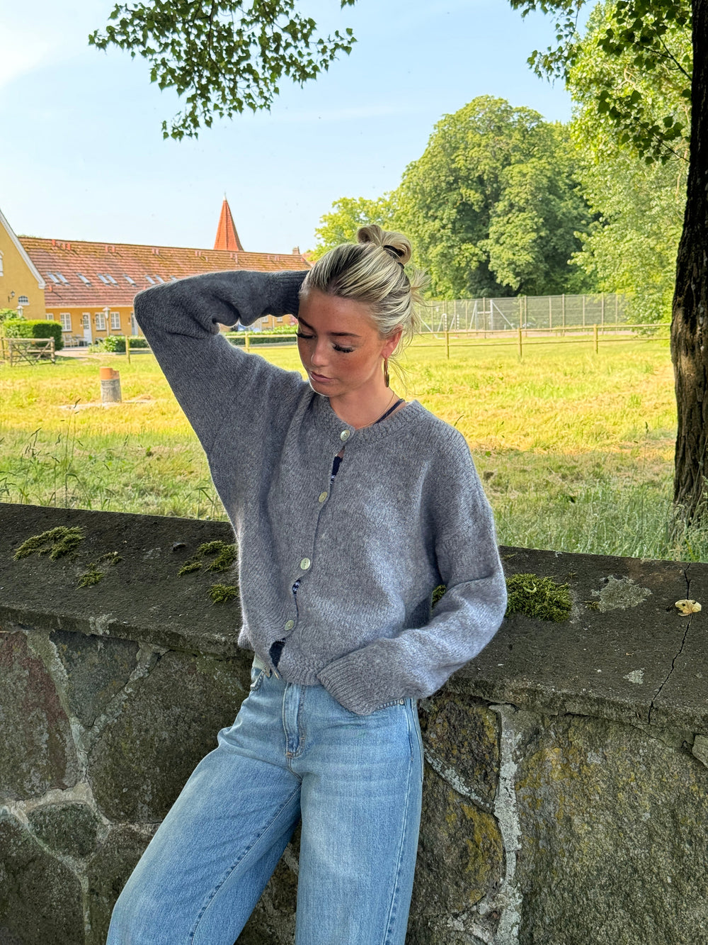 This cardigan closes with 5 buttons at the front and has a relaxed fit. It is made of the softest knit material and has a round collar. It can either be used as the main part of an outfit or over your outfit as an extra layer. Also available in pink.