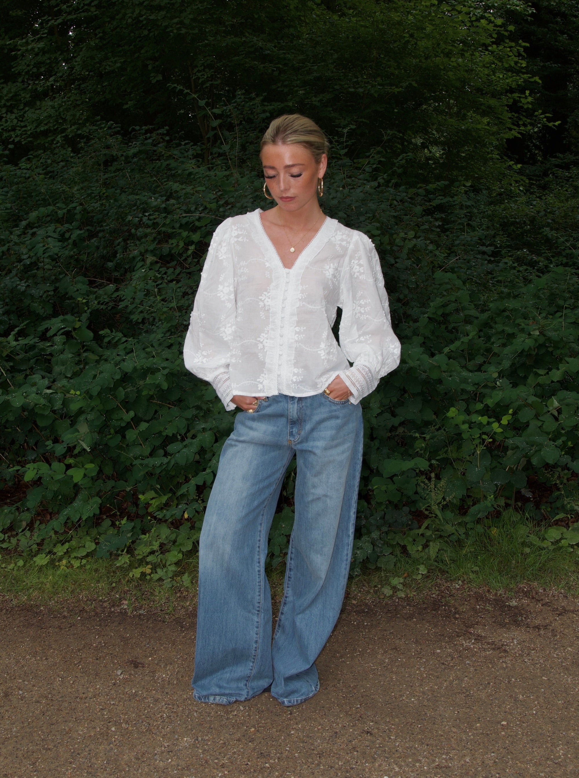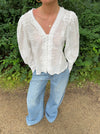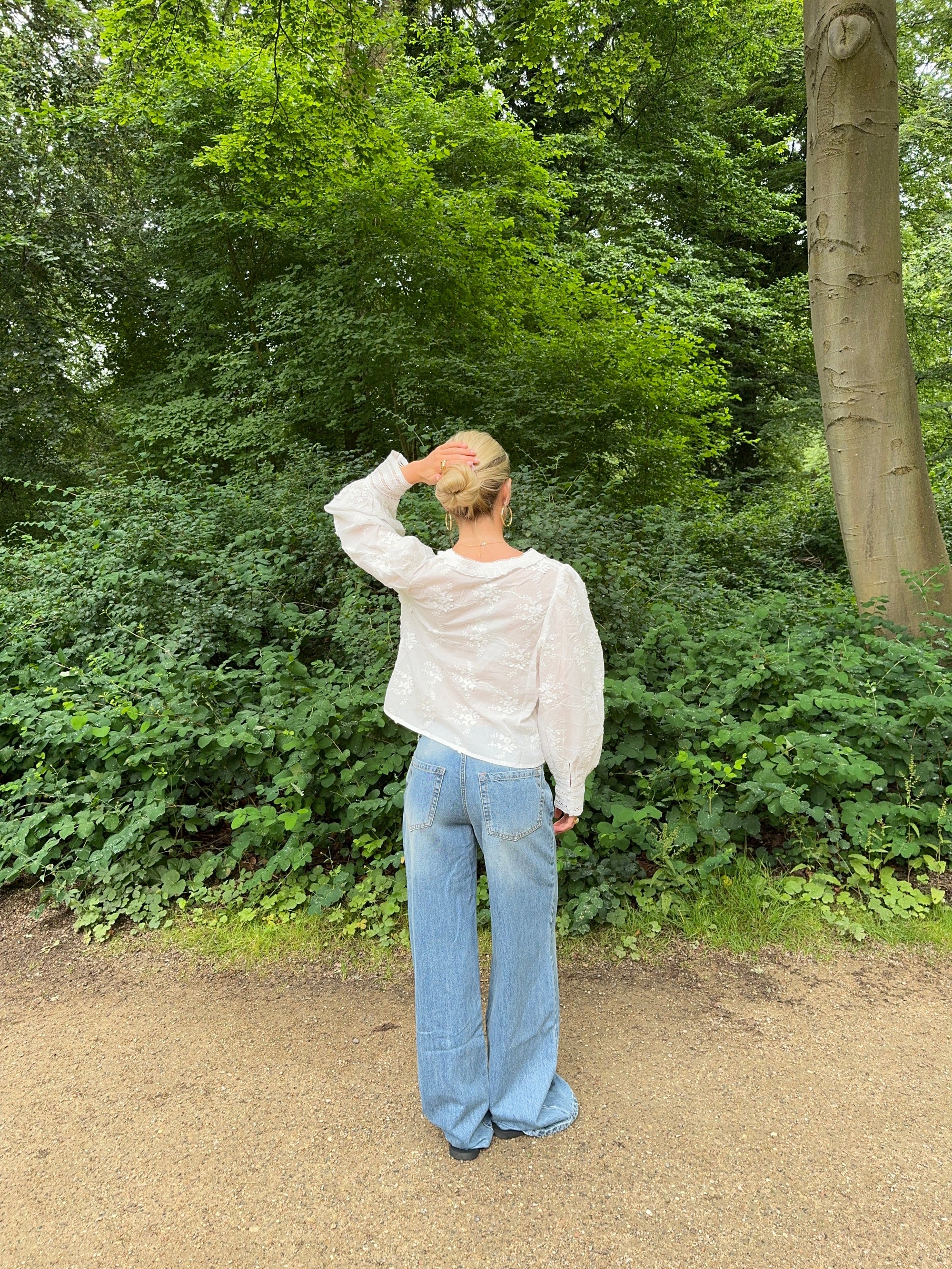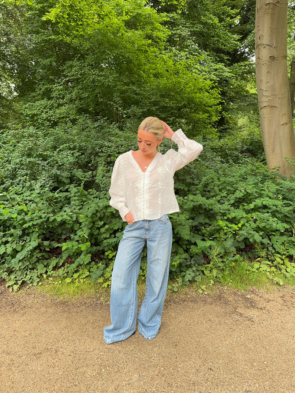Our Silvia blouse in 100% cotton and a loose fit is perfect for the Scandinavian summer! The blouse has a v-neckline and the cutest floral pattern.